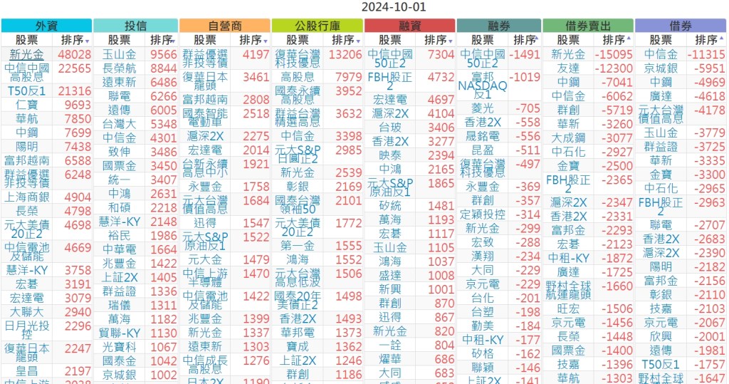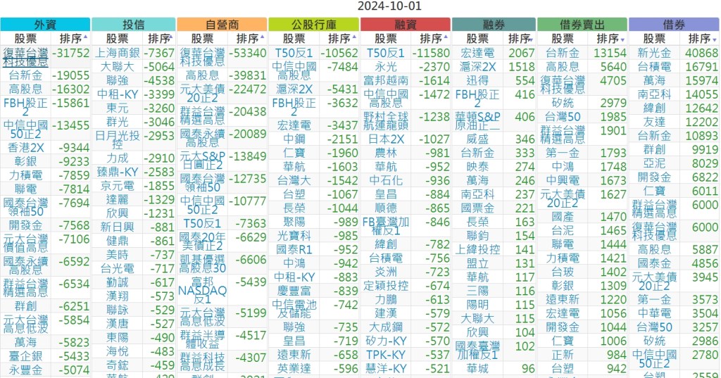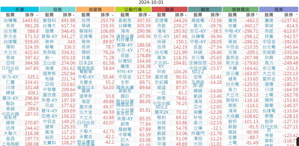 2024-1001【外資、投信】買賣超個股 2024-10-02 股狗網小編 投資誌-大盤 發表留言 上市:【外資、投信】買超(依金額) (單位:百萬) 上市:【外資、投信】賣超(依金額) (單位:百萬) 上市:【外資、投信】買超(依張數) (單位:張數) 上市:【外資、投信】賣超(依張數) (單位:張數) 免責宣言 本網站文章所提供資訊僅供參考,並無任何推介買賣之意,投資人應自行承擔交易風險。 分享此文: 分享到 X(在新視窗中開啟) X 分享到 Facebook(在新視窗中開啟) Facebook 喜歡 正在載入...