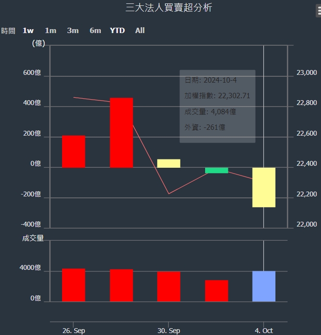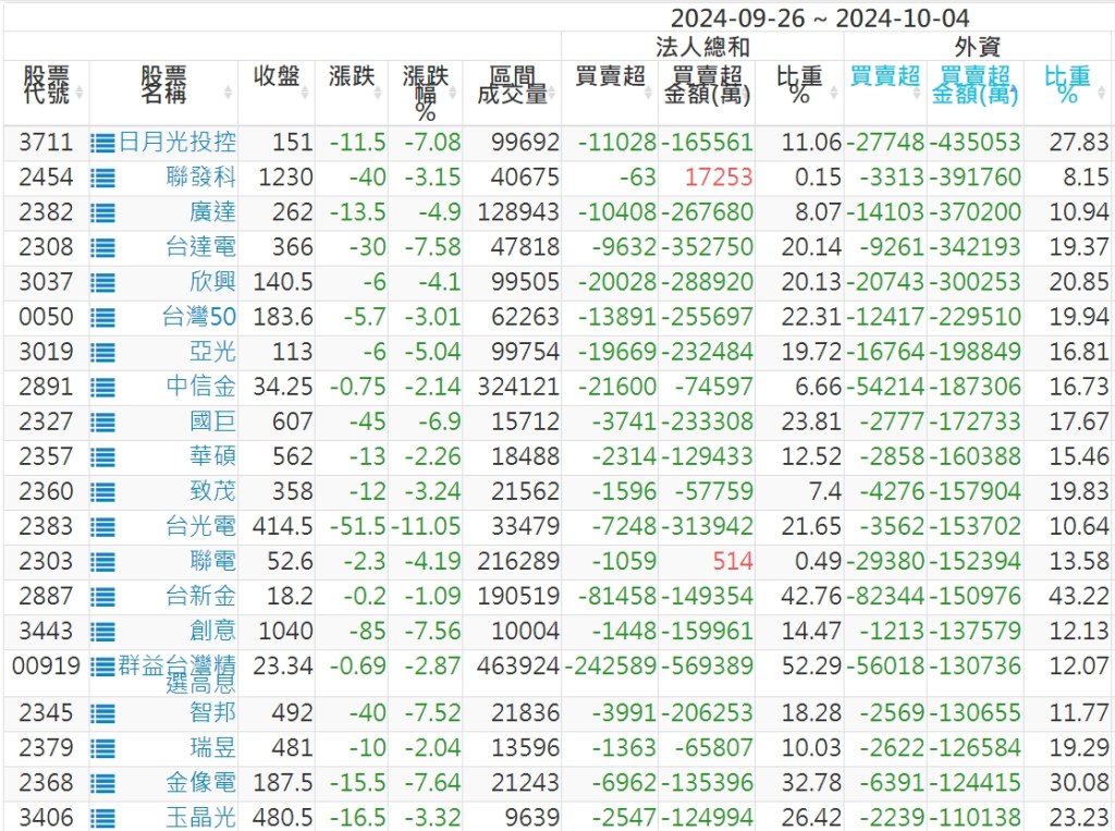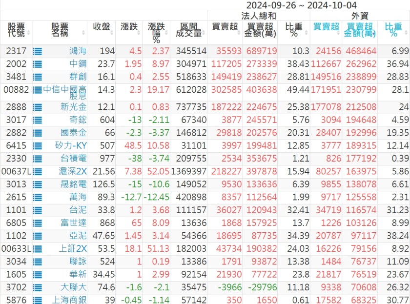 2024/09/26~2024/10/04近5日【外資】買賣超個股 2024-10-06 股狗網小編 投資誌-大盤 發表留言 外資本周累積【賣超】約261億元。 【上市外資買超個股】(以金額排行,單位:萬) 【上市外資賣超個股】(以金額排行,單位:萬) 【上櫃外資買超個股】(以金額排行,單位:萬) 【上櫃外資賣超個股】(以金額排行,單位:萬) 免責宣言 本網站文章所提供資訊僅供參考,並無任何推介買賣之意,投資人應自行承擔交易風險。 分享此文: 按一下即可分享至 X(在新視窗中開啟) X 按一下以分享至 Facebook(在新視窗中開啟) Facebook 喜歡 正在載入...