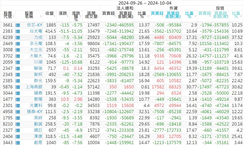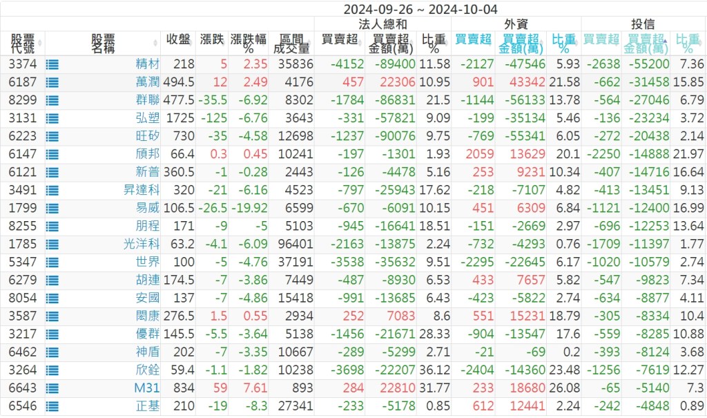 2024/09/26~2024/10/04近5日【投信】買賣超個股 2024-10-06 股狗網小編 投資誌-大盤 發表留言 【上市投信買超個股】(以金額排行,單位:萬) 【上市投信賣超個股】(以金額排行,單位:萬) 【上櫃投信買超個股】(以金額排行,單位:萬) 【上櫃投信賣超個股】(以金額排行,單位:萬) 免責宣言 本網站文章所提供資訊僅供參考,並無任何推介買賣之意,投資人應自行承擔交易風險。 分享此文: 按一下即可分享至 X(在新視窗中開啟) X 按一下以分享至 Facebook(在新視窗中開啟) Facebook 喜歡 正在載入...