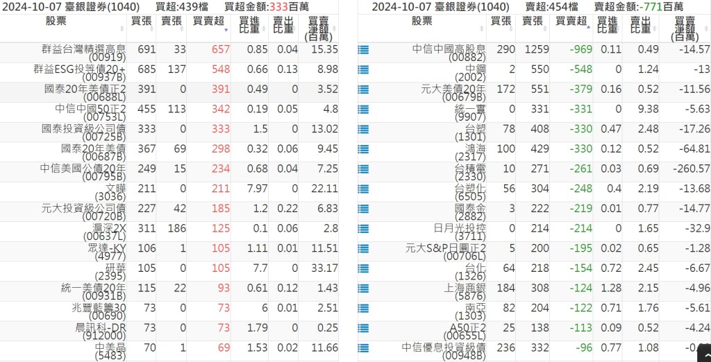 2024-1007關鍵券商買賣超 2024-10-07 股狗網小編 籌碼面每日資訊 發表留言 關鍵券商買賣超: 臺銀證券(1040): 台灣摩根士丹利(1470): 凱基台北(9268): 凱基信義(9216): 元大土城永寧(9875): 康和永和(845B) : 富邦建國(9658): 免責宣言 本網站文章所提供資訊僅供參考,並無任何推介買賣之意,投資人應自行承擔交易風險。 分享此文: 分享到 X(在新視窗中開啟) X 分享到 Facebook(在新視窗中開啟) Facebook 喜歡 正在載入...
