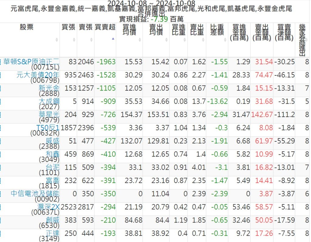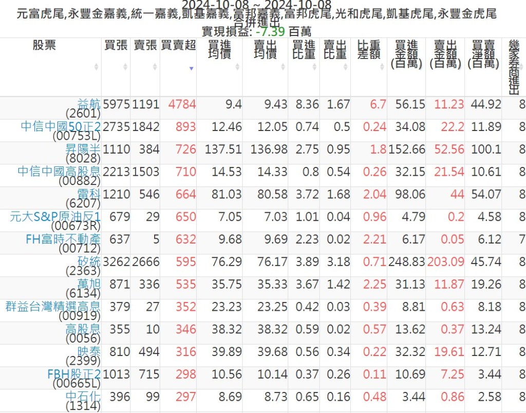 2024-1008主力買賣超個股 2024-10-08 股狗網小編 籌碼面每日資訊 發表留言 可參考下文 『如何查詢當沖、隔日沖分公司券商買賣』 主力當沖券商: 『元富虎尾』,『永豐金嘉義』,『統一嘉義』,『凱基嘉義』,『富邦嘉義』,『富邦虎尾』,『光和虎尾』,『凱基虎尾』,『永豐金虎尾』。 『當沖標的』 『買超股票』 『賣超股票』 免責宣言 本網站文章所提供資訊僅供參考,並無任何推介買賣之意,投資人應自行承擔交易風險。 分享此文: 分享到 X(在新視窗中開啟) X 分享到 Facebook(在新視窗中開啟) Facebook 喜歡 正在載入...