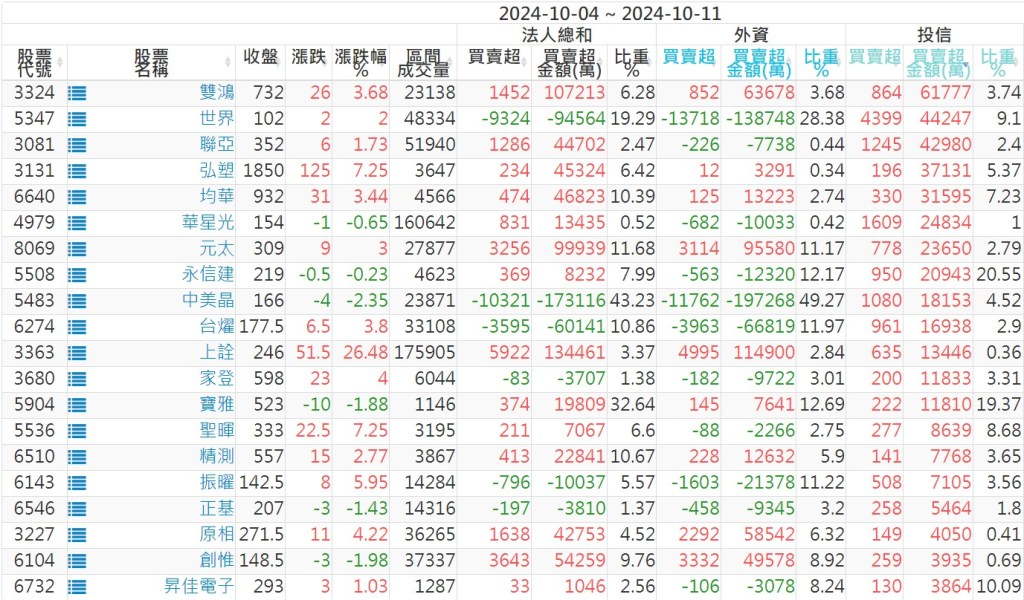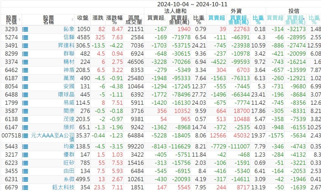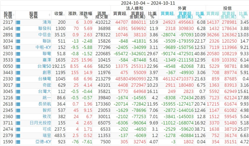 2024/10/04~2024/10/11近5日【投信】買賣超個股 2024-10-13 股狗網小編 投資誌-大盤 發表留言 【上市投信買超個股】(以金額排行,單位:萬) 【上市投信賣超個股】(以金額排行,單位:萬) 【上櫃投信買超個股】(以金額排行,單位:萬) 【上櫃投信賣超個股】(以金額排行,單位:萬) 免責宣言 本網站文章所提供資訊僅供參考,並無任何推介買賣之意,投資人應自行承擔交易風險。 分享此文: 分享到 X(在新視窗中開啟) X 分享到 Facebook(在新視窗中開啟) Facebook 喜歡 正在載入...