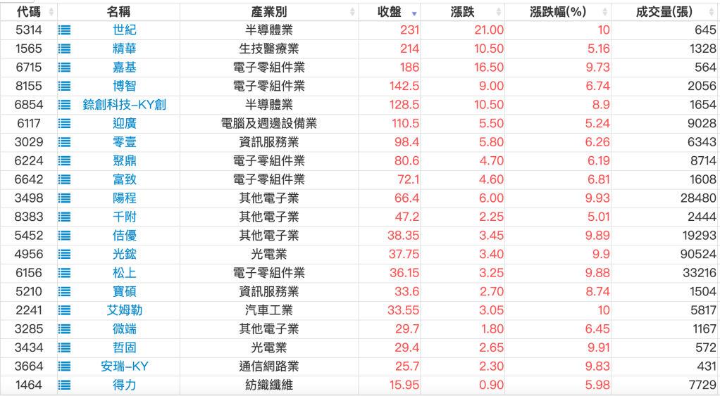 2024-1014日新高爆量上漲股 2024-10-14 股狗網小編 選股條件 發表留言 利用股狗選股的選股條件可以【挑選突破20日新高,爆量上漲起漲點股票】 1.股狗選股 https://www.stockdog.com.tw 2.選股條件: a.收盤價創20日新高 b.當日漲幅 > 2% C.成交量大於5日均量2倍 免責宣言 本網站文章所提供資訊僅供參考,並無任何推介買賣之意,投資人應自行承擔交易風險。 分享此文: 按一下即可分享至 X(在新視窗中開啟) X 按一下以分享至 Facebook(在新視窗中開啟) Facebook 喜歡 正在載入...