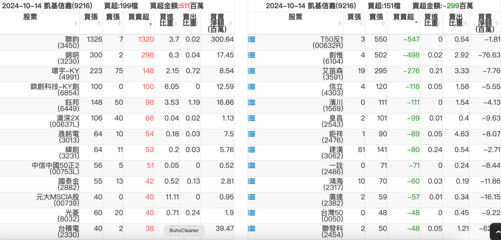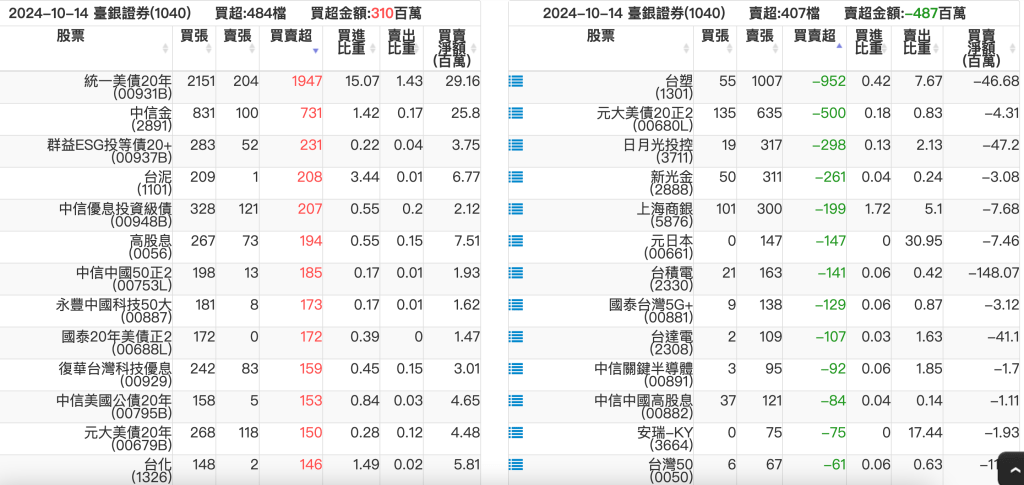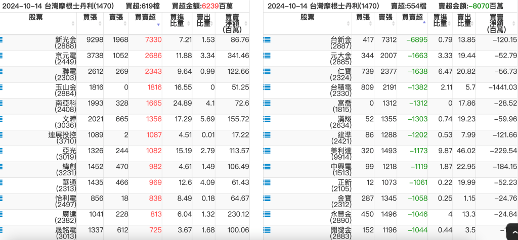 2024-1014關鍵券商買賣超 2024-10-14 股狗網小編 籌碼面每日資訊 發表留言 關鍵券商買賣超: 臺銀證券(1040): 台灣摩根士丹利(1470): 凱基台北(9268): 凱基信義(9216): 元大土城永寧(9875): 康和永和(845B) : 富邦建國(9658): 免責宣言 本網站文章所提供資訊僅供參考,並無任何推介買賣之意,投資人應自行承擔交易風險。 分享此文: 按一下即可分享至 X(在新視窗中開啟) X 按一下以分享至 Facebook(在新視窗中開啟) Facebook 喜歡 正在載入...