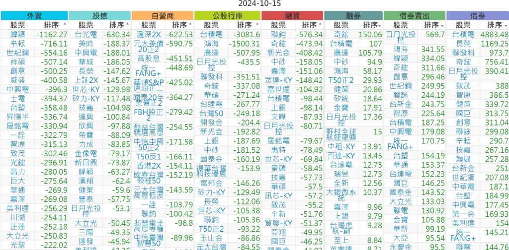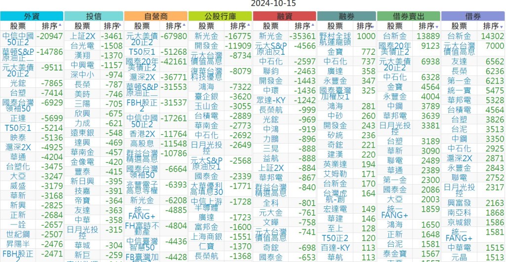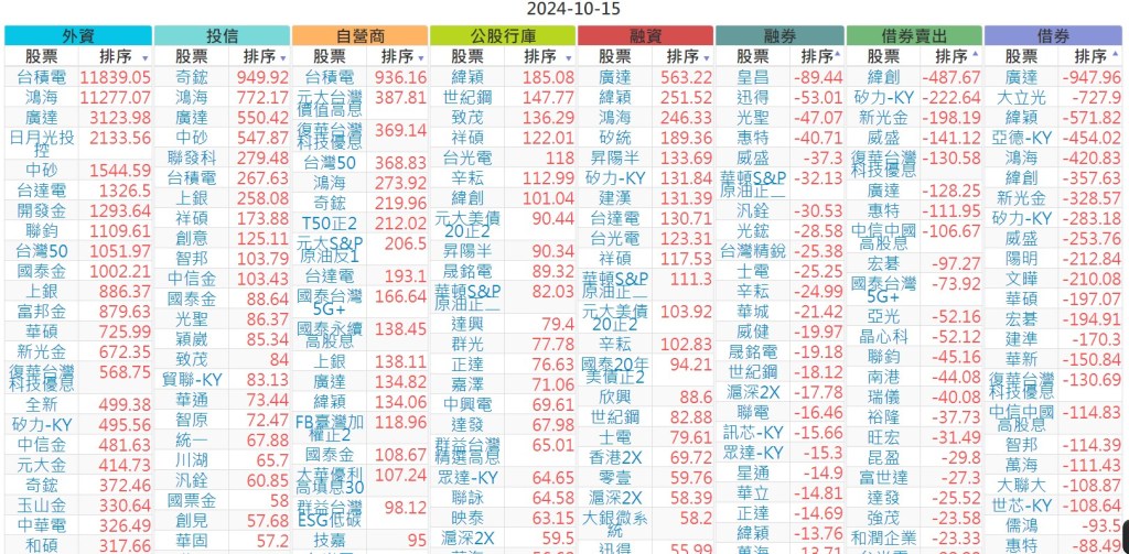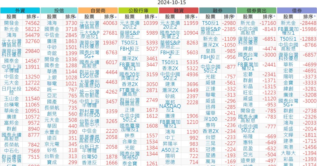 2024-1015【外資、投信】買賣超個股 2024-10-16 股狗網小編 投資誌-大盤 發表留言 上市:【外資、投信】買超(依金額) (單位:百萬) 上市:【外資、投信】賣超(依金額) (單位:百萬) 上市:【外資、投信】買超(依張數) (單位:張數) 上市:【外資、投信】賣超(依張數) (單位:張數) 免責宣言 本網站文章所提供資訊僅供參考,並無任何推介買賣之意,投資人應自行承擔交易風險。 分享此文: 分享到 X(在新視窗中開啟) X 分享到 Facebook(在新視窗中開啟) Facebook 喜歡 正在載入...