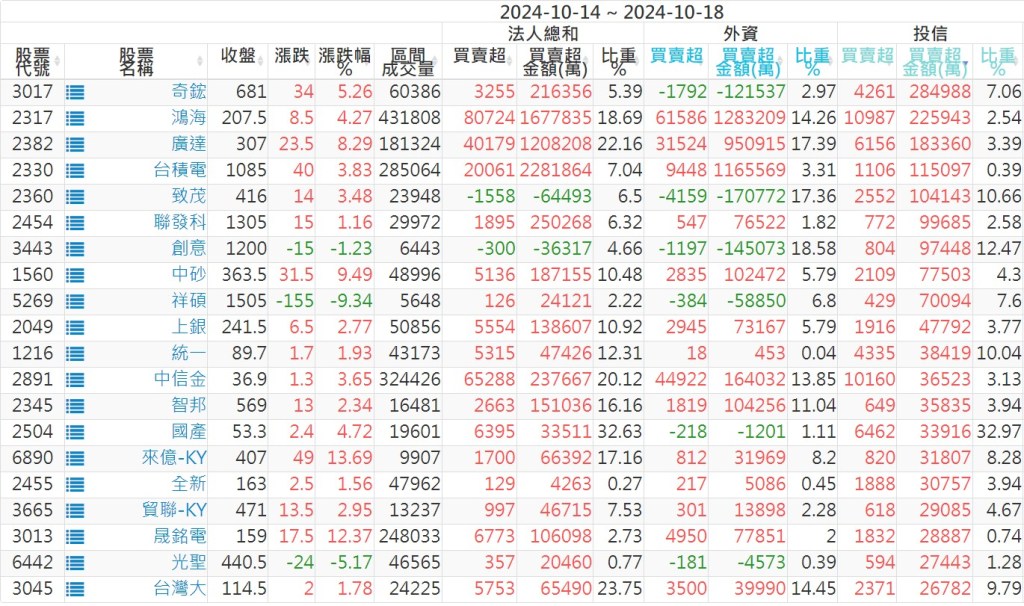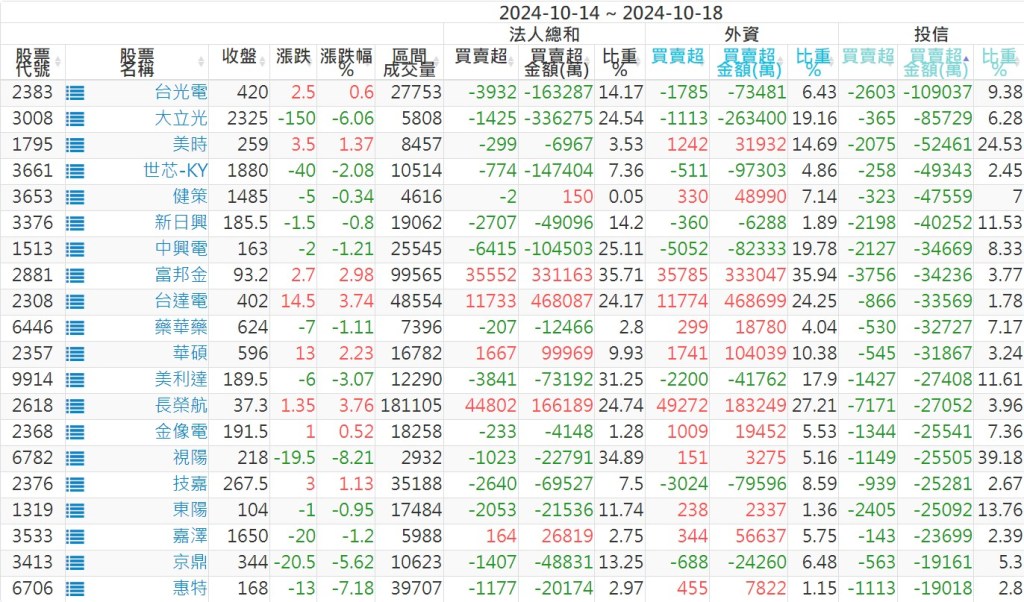 2024/10/14~2024/10/18近5日【投信】買賣超個股 2024-10-20 股狗網小編 投資誌-大盤 發表留言 【上市投信買超個股】(以金額排行,單位:萬) 【上市投信賣超個股】(以金額排行,單位:萬) 【上櫃投信買超個股】(以金額排行,單位:萬) 【上櫃投信賣超個股】(以金額排行,單位:萬) 免責宣言 本網站文章所提供資訊僅供參考,並無任何推介買賣之意,投資人應自行承擔交易風險。 分享此文: 分享到 X(在新視窗中開啟) X 分享到 Facebook(在新視窗中開啟) Facebook 喜歡 正在載入...