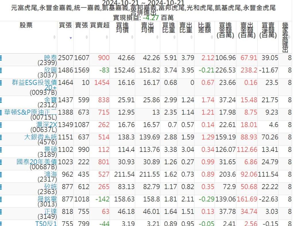 2024-1021主力買賣超個股 2024-10-21 股狗網小編 籌碼面每日資訊 發表留言 可參考下文 『如何查詢當沖、隔日沖分公司券商買賣』 主力當沖券商: 『元富虎尾』,『永豐金嘉義』,『統一嘉義』,『凱基嘉義』,『富邦嘉義』,『富邦虎尾』,『光和虎尾』,『凱基虎尾』,『永豐金虎尾』。 『當沖標的』 『買超股票』 『賣超股票』 免責宣言 本網站文章所提供資訊僅供參考,並無任何推介買賣之意,投資人應自行承擔交易風險。 分享此文: 按一下即可分享至 X(在新視窗中開啟) X 按一下以分享至 Facebook(在新視窗中開啟) Facebook 喜歡 正在載入...