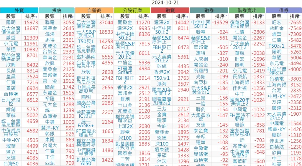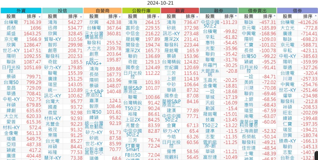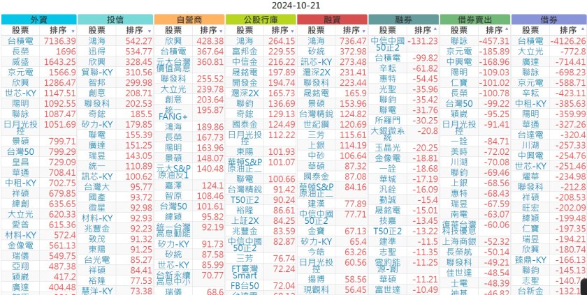 2024-1021【外資、投信】買賣超個股 2024-10-22 股狗網小編 投資誌-大盤 發表留言 上市:【外資、投信】買超(依金額) (單位:百萬) 上市:【外資、投信】賣超(依金額) (單位:百萬) 上市:【外資、投信】買超(依張數) (單位:張數) 上市:【外資、投信】賣超(依張數) (單位:張數) 免責宣言 本網站文章所提供資訊僅供參考,並無任何推介買賣之意,投資人應自行承擔交易風險。 分享此文: 分享到 X(在新視窗中開啟) X 分享到 Facebook(在新視窗中開啟) Facebook 喜歡 正在載入...