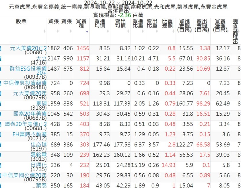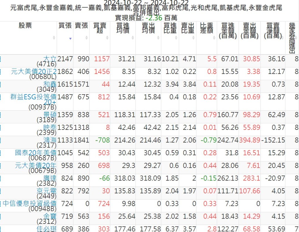 2024-1022主力買賣超個股 2024-10-22 股狗網小編 籌碼面每日資訊 發表留言 可參考下文 『如何查詢當沖、隔日沖分公司券商買賣』 主力當沖券商: 『元富虎尾』,『永豐金嘉義』,『統一嘉義』,『凱基嘉義』,『富邦嘉義』,『富邦虎尾』,『光和虎尾』,『凱基虎尾』,『永豐金虎尾』。 『當沖標的』 『買超股票』 『賣超股票』 免責宣言 本網站文章所提供資訊僅供參考,並無任何推介買賣之意,投資人應自行承擔交易風險。 分享此文: 分享到 X(在新視窗中開啟) X 分享到 Facebook(在新視窗中開啟) Facebook 喜歡 正在載入...