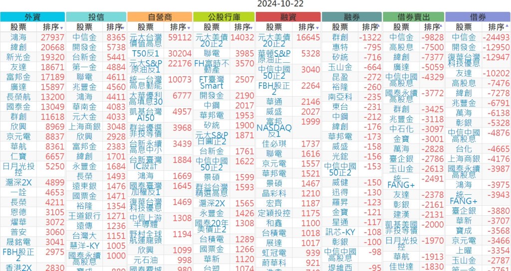 2024-1022【外資、投信】買賣超個股 2024-10-23 股狗網小編 投資誌-大盤 發表留言 上市:【外資、投信】買超(依金額) (單位:百萬) 上市:【外資、投信】賣超(依金額) (單位:百萬) 上市:【外資、投信】買超(依張數) (單位:張數) 上市:【外資、投信】賣超(依張數) (單位:張數) 免責宣言 本網站文章所提供資訊僅供參考,並無任何推介買賣之意,投資人應自行承擔交易風險。 分享此文: 分享到 X(在新視窗中開啟) X 分享到 Facebook(在新視窗中開啟) Facebook 喜歡 正在載入...