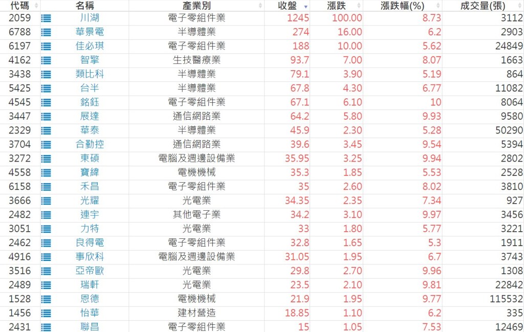 2024-1023日新高爆量上漲股 2024-10-23 股狗網小編 選股條件 發表留言 利用股狗選股的選股條件可以【挑選突破20日新高,爆量上漲起漲點股票】 1.股狗選股 https://www.stockdog.com.tw 2.選股條件: a.收盤價創20日新高 b.當日漲幅 > 2% C.成交量大於5日均量2倍 免責宣言 本網站文章所提供資訊僅供參考,並無任何推介買賣之意,投資人應自行承擔交易風險。 分享此文: 按一下即可分享至 X(在新視窗中開啟) X 按一下以分享至 Facebook(在新視窗中開啟) Facebook 喜歡 正在載入...