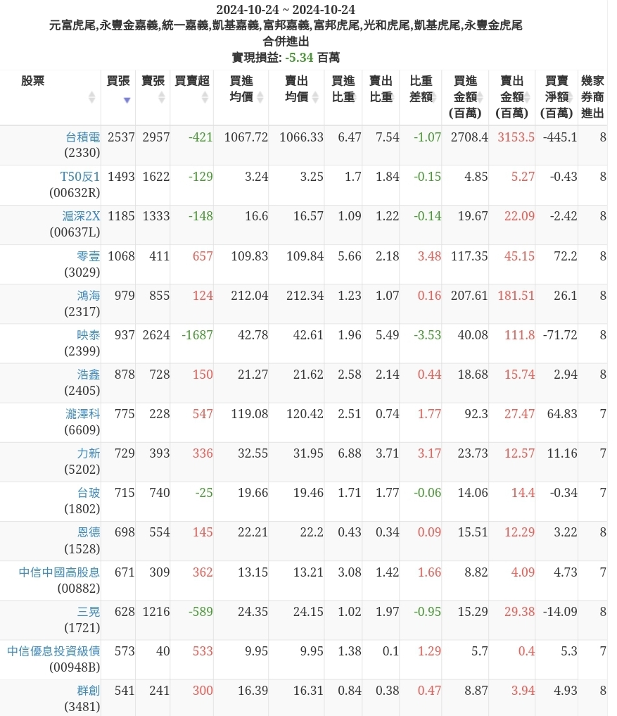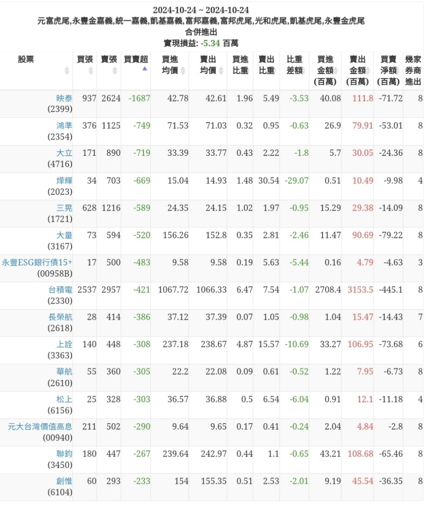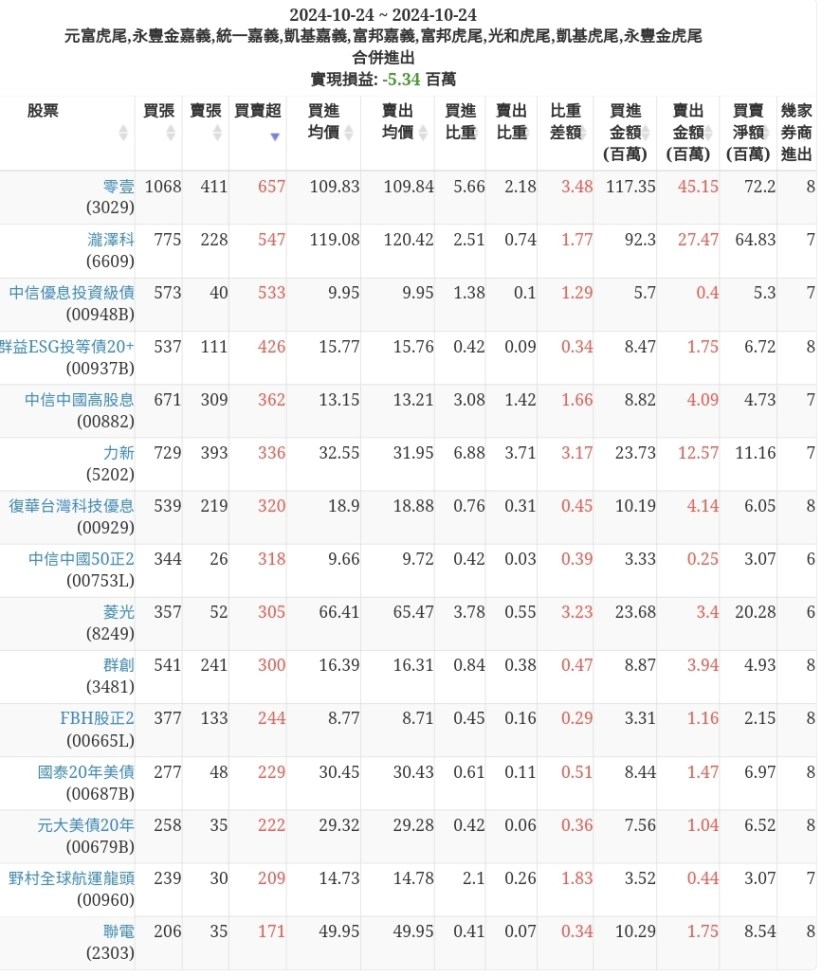 2024-1024主力買賣超個股 2024-10-24 股狗網小編 籌碼面每日資訊 發表留言 可參考下文 『如何查詢當沖、隔日沖分公司券商買賣』 主力當沖券商: 『元富虎尾』,『永豐金嘉義』,『統一嘉義』,『凱基嘉義』,『富邦嘉義』,『富邦虎尾』,『光和虎尾』,『凱基虎尾』,『永豐金虎尾』。 『當沖標的』 『買超股票』 『賣超股票』 免責宣言 本網站文章所提供資訊僅供參考,並無任何推介買賣之意,投資人應自行承擔交易風險。 分享此文: 按一下即可分享至 X(在新視窗中開啟) X 按一下以分享至 Facebook(在新視窗中開啟) Facebook 喜歡 正在載入...