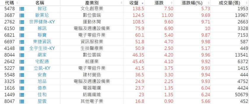 2024-1029日新高爆量上漲股 2024-10-29 股狗網小編 選股條件 發表留言 利用股狗選股的選股條件可以【挑選突破20日新高,爆量上漲起漲點股票】 1.股狗選股 https://www.stockdog.com.tw 2.選股條件: a.收盤價創20日新高 b.當日漲幅 > 2% C.成交量大於5日均量2倍 免責宣言 本網站文章所提供資訊僅供參考,並無任何推介買賣之意,投資人應自行承擔交易風險。 分享此文: 按一下即可分享至 X(在新視窗中開啟) X 按一下以分享至 Facebook(在新視窗中開啟) Facebook 喜歡 正在載入...