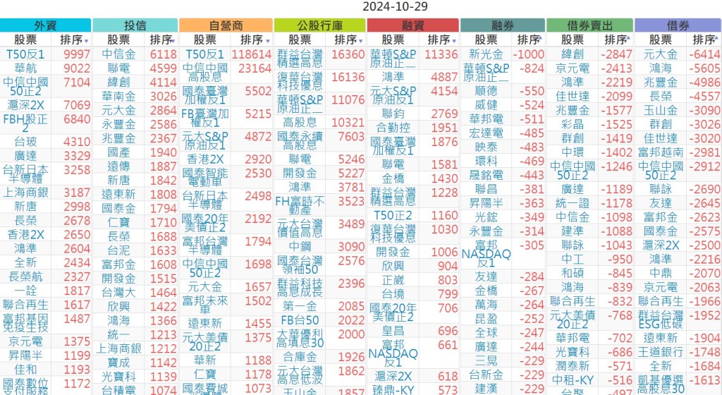 2024-1029【外資、投信】買賣超個股 2024-10-30 股狗網小編 投資誌-大盤 發表留言 上市:【外資、投信】買超(依金額) (單位:百萬) 上市:【外資、投信】賣超(依金額) (單位:百萬) 上市:【外資、投信】買超(依張數) (單位:張數) 上市:【外資、投信】賣超(依張數) (單位:張數) 免責宣言 本網站文章所提供資訊僅供參考,並無任何推介買賣之意,投資人應自行承擔交易風險。 分享此文: 按一下即可分享至 X(在新視窗中開啟) X 按一下以分享至 Facebook(在新視窗中開啟) Facebook 喜歡 正在載入...
