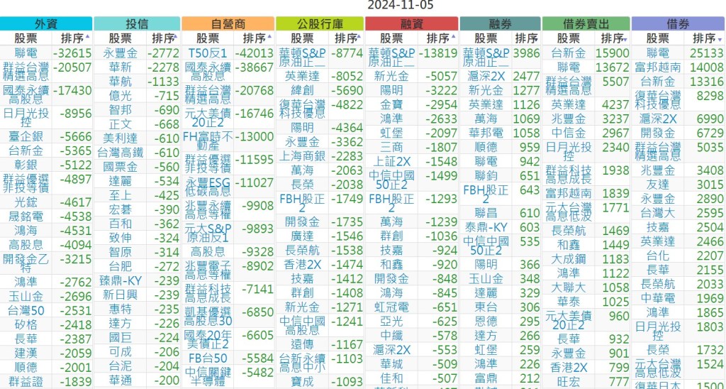 2024-1105【外資、投信】買賣超個股 2024-11-06 股狗網小編 投資誌-大盤 發表留言 上市:【外資、投信】買超(依金額) (單位:百萬) 上市:【外資、投信】賣超(依金額) (單位:百萬) 上市:【外資、投信】買超(依張數) (單位:張數) 上市:【外資、投信】賣超(依張數) (單位:張數) 免責宣言 本網站文章所提供資訊僅供參考,並無任何推介買賣之意,投資人應自行承擔交易風險。 分享此文: 分享到 X(在新視窗中開啟) X 分享到 Facebook(在新視窗中開啟) Facebook 喜歡 正在載入...