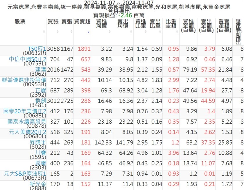 2024-1107主力買賣超個股 2024-11-08 股狗網小編 籌碼面每日資訊 發表留言 可參考下文 『如何查詢當沖、隔日沖分公司券商買賣』 主力當沖券商: 『元富虎尾』,『永豐金嘉義』,『統一嘉義』,『凱基嘉義』,『富邦嘉義』,『富邦虎尾』,『光和虎尾』,『凱基虎尾』,『永豐金虎尾』。 『當沖標的』 『買超股票』 『賣超股票』 免責宣言 本網站文章所提供資訊僅供參考,並無任何推介買賣之意,投資人應自行承擔交易風險。 分享此文: 按一下即可分享至 X(在新視窗中開啟) X 按一下以分享至 Facebook(在新視窗中開啟) Facebook 喜歡 正在載入...