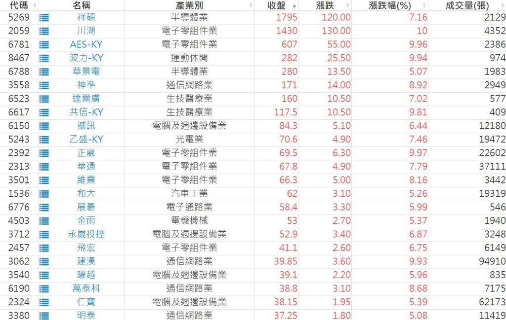 2024-1107日新高爆量上漲股 2024-11-08 股狗網小編 選股條件 發表留言 利用股狗選股的選股條件可以【挑選突破20日新高,爆量上漲起漲點股票】 1.股狗選股 https://www.stockdog.com.tw 2.選股條件: a.收盤價創20日新高 b.當日漲幅 > 2% C.成交量大於5日均量2倍 免責宣言 本網站文章所提供資訊僅供參考,並無任何推介買賣之意,投資人應自行承擔交易風險。 分享此文: 按一下即可分享至 X(在新視窗中開啟) X 按一下以分享至 Facebook(在新視窗中開啟) Facebook 喜歡 正在載入...