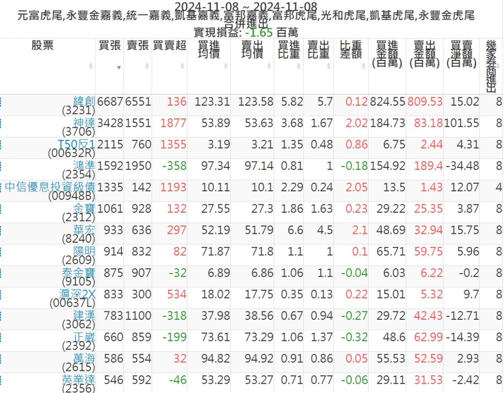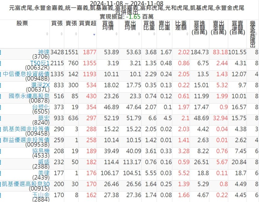 2024-1108主力買賣超個股 2024-11-08 股狗網小編 籌碼面每日資訊 發表留言 可參考下文 『如何查詢當沖、隔日沖分公司券商買賣』 主力當沖券商: 『元富虎尾』,『永豐金嘉義』,『統一嘉義』,『凱基嘉義』,『富邦嘉義』,『富邦虎尾』,『光和虎尾』,『凱基虎尾』,『永豐金虎尾』。 『當沖標的』 『買超股票』 『賣超股票』 免責宣言 本網站文章所提供資訊僅供參考,並無任何推介買賣之意,投資人應自行承擔交易風險。 分享此文: 按一下即可分享至 X(在新視窗中開啟) X 按一下以分享至 Facebook(在新視窗中開啟) Facebook 喜歡 正在載入...