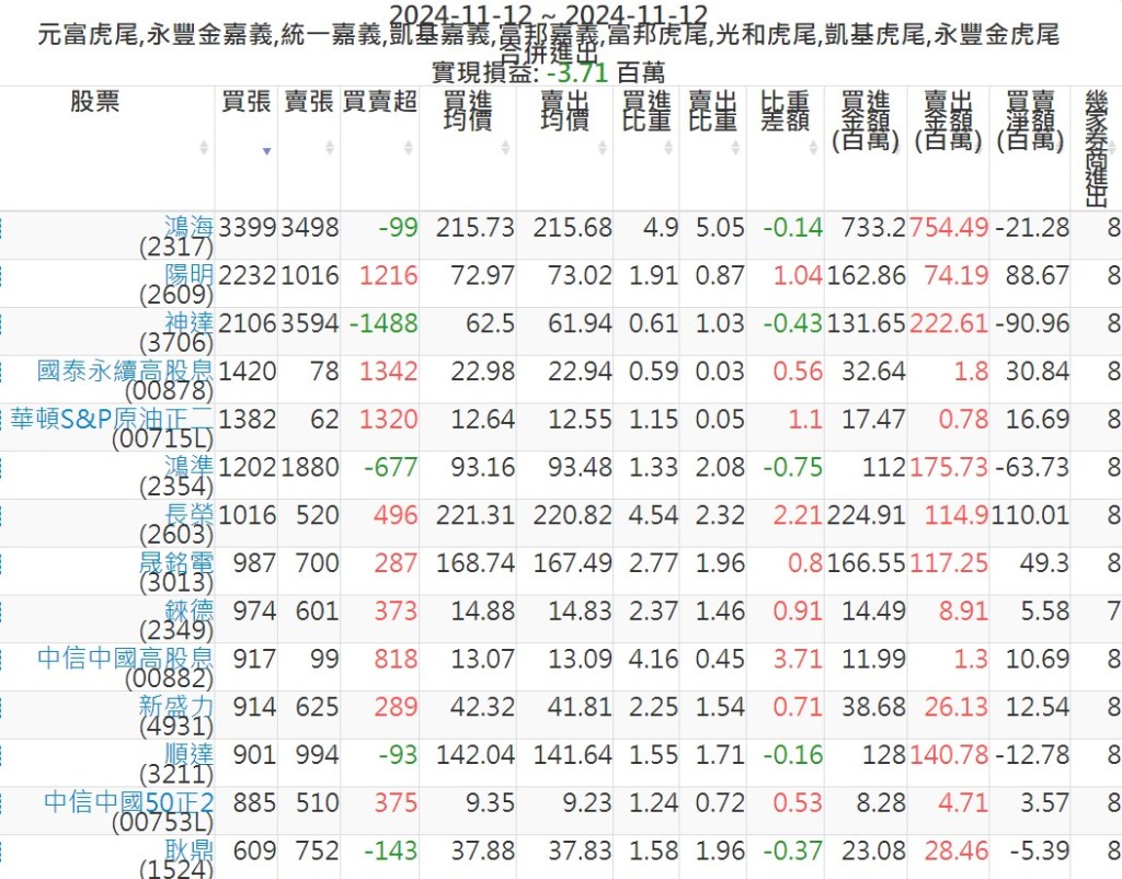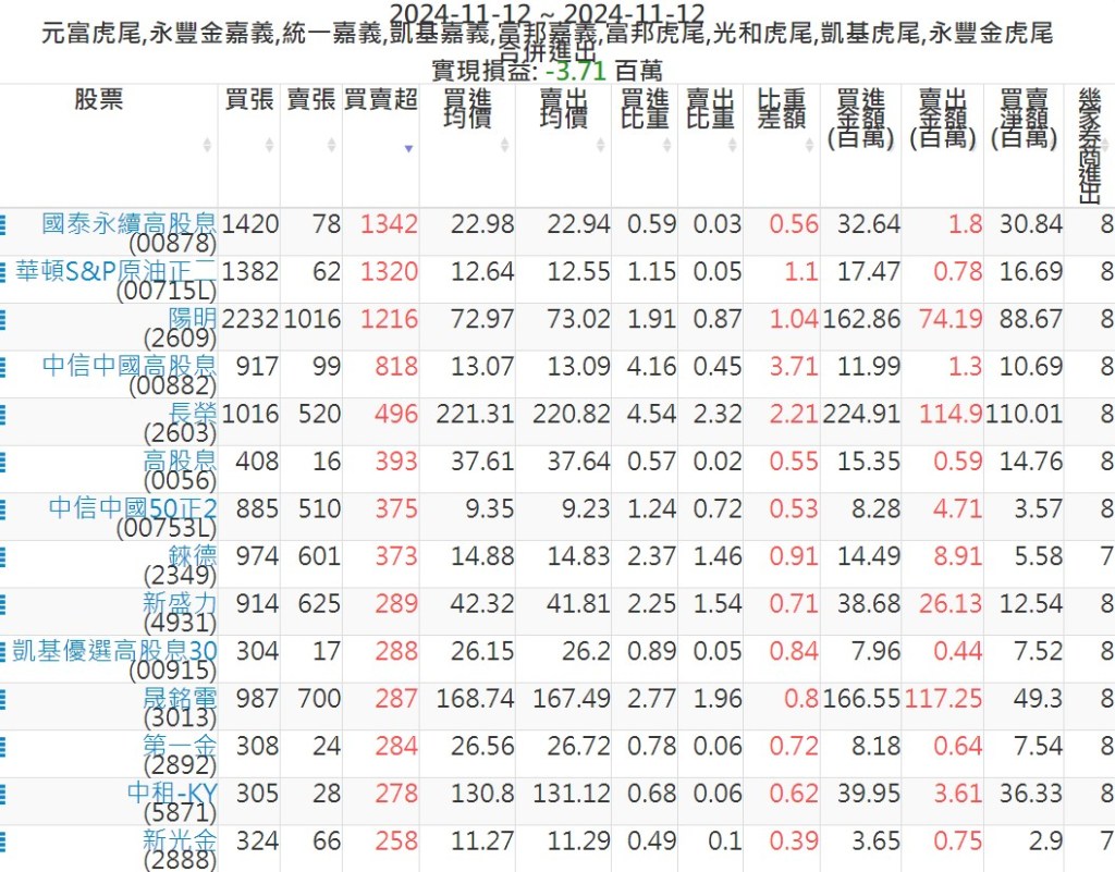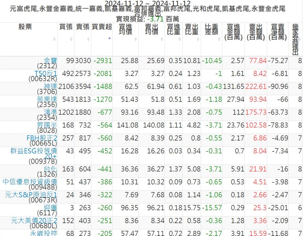2024-1112主力買賣超個股 2024-11-12 股狗網小編 籌碼面每日資訊 發表留言 可參考下文 『如何查詢當沖、隔日沖分公司券商買賣』 主力當沖券商: 『元富虎尾』,『永豐金嘉義』,『統一嘉義』,『凱基嘉義』,『富邦嘉義』,『富邦虎尾』,『光和虎尾』,『凱基虎尾』,『永豐金虎尾』。 『當沖標的』 『買超股票』 『賣超股票』 免責宣言 本網站文章所提供資訊僅供參考,並無任何推介買賣之意,投資人應自行承擔交易風險。 分享此文: 分享到 X(在新視窗中開啟) X 分享到 Facebook(在新視窗中開啟) Facebook 喜歡 正在載入...