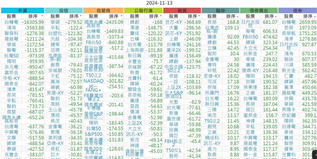 2024-1113【外資、投信】買賣超個股 2024-11-14 股狗網小編 投資誌-大盤 發表留言 上市:【外資、投信】買超(依金額) (單位:百萬) 上市:【外資、投信】賣超(依金額) (單位:百萬) 上市:【外資、投信】買超(依張數) (單位:張數) 上市:【外資、投信】賣超(依張數) (單位:張數) 免責宣言 本網站文章所提供資訊僅供參考,並無任何推介買賣之意,投資人應自行承擔交易風險。 分享此文: 分享到 X(在新視窗中開啟) X 分享到 Facebook(在新視窗中開啟) Facebook 喜歡 正在載入...