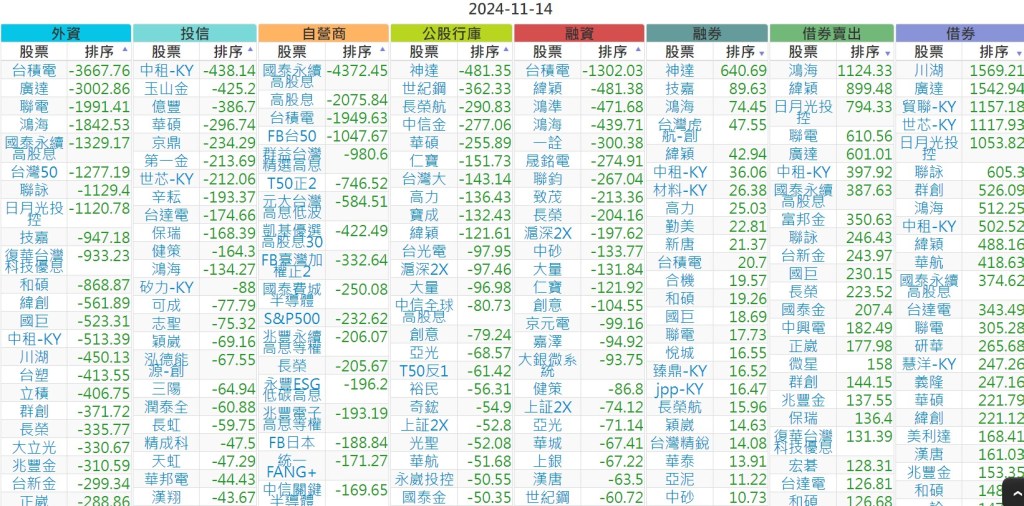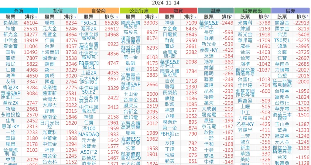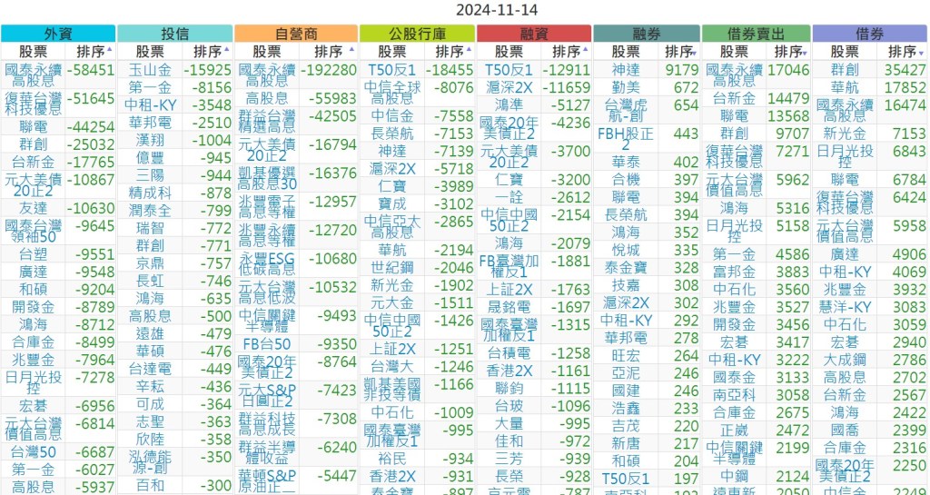 2024-1114【外資、投信】買賣超個股 2024-11-15 股狗網小編 投資誌-大盤 發表留言 上市:【外資、投信】買超(依金額) (單位:百萬) 上市:【外資、投信】賣超(依金額) (單位:百萬) 上市:【外資、投信】買超(依張數) (單位:張數) 上市:【外資、投信】賣超(依張數) (單位:張數) 免責宣言 本網站文章所提供資訊僅供參考,並無任何推介買賣之意,投資人應自行承擔交易風險。 分享此文: 分享到 X(在新視窗中開啟) X 分享到 Facebook(在新視窗中開啟) Facebook 喜歡 正在載入...