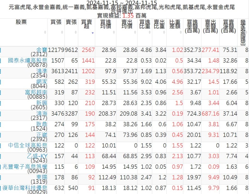 2024-1115主力買賣超個股 2024-11-15 股狗網小編 籌碼面每日資訊 發表留言 可參考下文 『如何查詢當沖、隔日沖分公司券商買賣』 主力當沖券商: 『元富虎尾』,『永豐金嘉義』,『統一嘉義』,『凱基嘉義』,『富邦嘉義』,『富邦虎尾』,『光和虎尾』,『凱基虎尾』,『永豐金虎尾』。 『當沖標的』 『買超股票』 『賣超股票』 免責宣言 本網站文章所提供資訊僅供參考,並無任何推介買賣之意,投資人應自行承擔交易風險。 分享此文: 分享到 X(在新視窗中開啟) X 分享到 Facebook(在新視窗中開啟) Facebook 喜歡 正在載入...