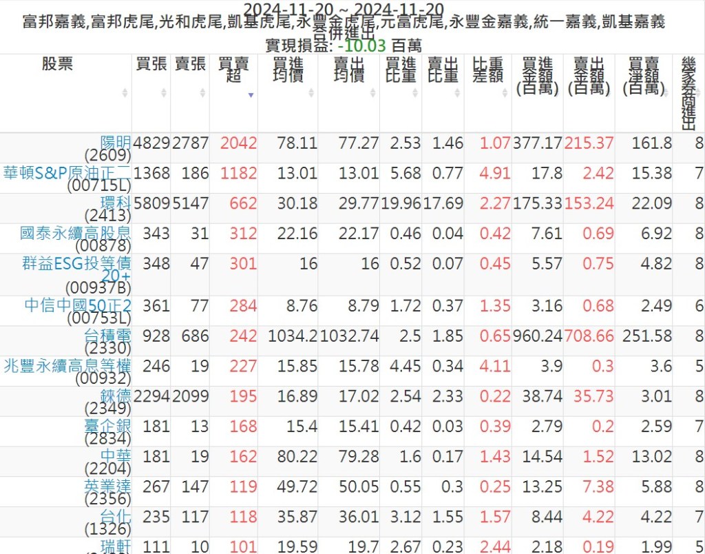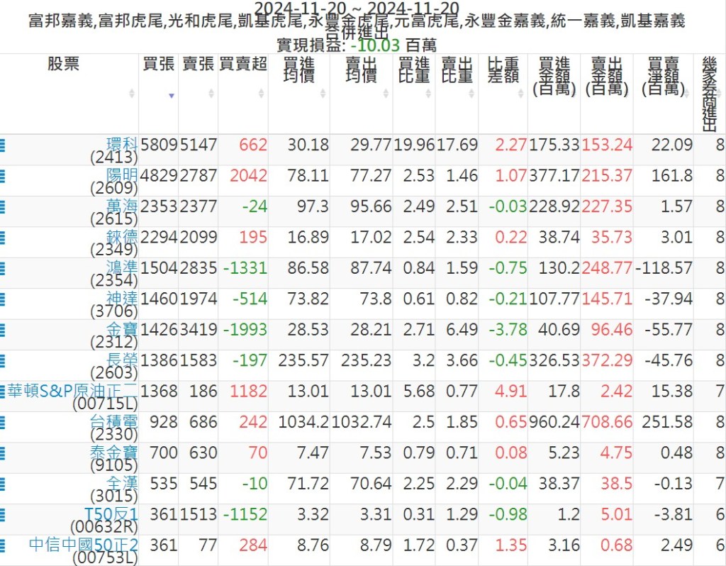 2024-1120主力買賣超個股 2024-11-20 股狗網小編 籌碼面每日資訊 發表留言 可參考下文 『如何查詢當沖、隔日沖分公司券商買賣』 主力當沖券商: 『元富虎尾』,『永豐金嘉義』,『統一嘉義』,『凱基嘉義』,『富邦嘉義』,『富邦虎尾』,『光和虎尾』,『凱基虎尾』,『永豐金虎尾』。 『當沖標的』 『買超股票』 『賣超股票』 免責宣言 本網站文章所提供資訊僅供參考,並無任何推介買賣之意,投資人應自行承擔交易風險。 分享此文: 按一下即可分享至 X(在新視窗中開啟) X 按一下以分享至 Facebook(在新視窗中開啟) Facebook 喜歡 正在載入...