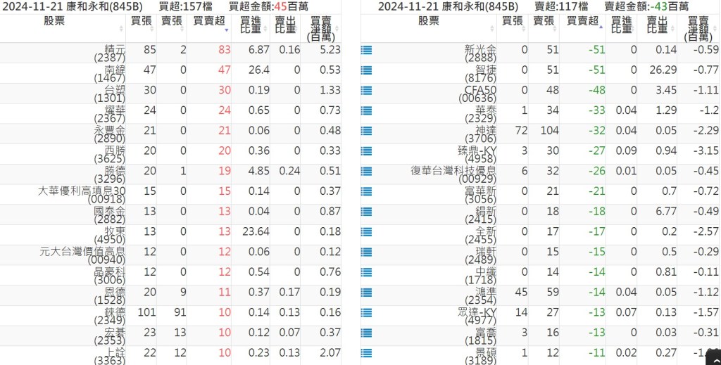 2024-1121關鍵券商買賣超 2024-11-21 股狗網小編 籌碼面每日資訊 發表留言 關鍵券商買賣超: 臺銀證券(1040): 台灣摩根士丹利(1470): 凱基台北(9268): 凱基信義(9216): 元大土城永寧(9875): 康和永和(845B) : 富邦建國(9658): 免責宣言 本網站文章所提供資訊僅供參考,並無任何推介買賣之意,投資人應自行承擔交易風險。 分享此文: 分享到 X(在新視窗中開啟) X 分享到 Facebook(在新視窗中開啟) Facebook 喜歡 正在載入...