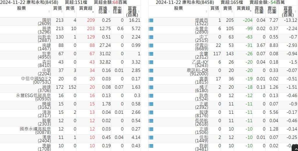 2024-1122關鍵券商買賣超 2024-11-23 股狗網小編 籌碼面每日資訊 發表留言 關鍵券商買賣超: 臺銀證券(1040): 台灣摩根士丹利(1470): 凱基台北(9268): 凱基信義(9216): 元大土城永寧(9875): 康和永和(845B) : 富邦建國(9658): 免責宣言 本網站文章所提供資訊僅供參考,並無任何推介買賣之意,投資人應自行承擔交易風險。 分享此文: 分享到 X(在新視窗中開啟) X 分享到 Facebook(在新視窗中開啟) Facebook 喜歡 正在載入...