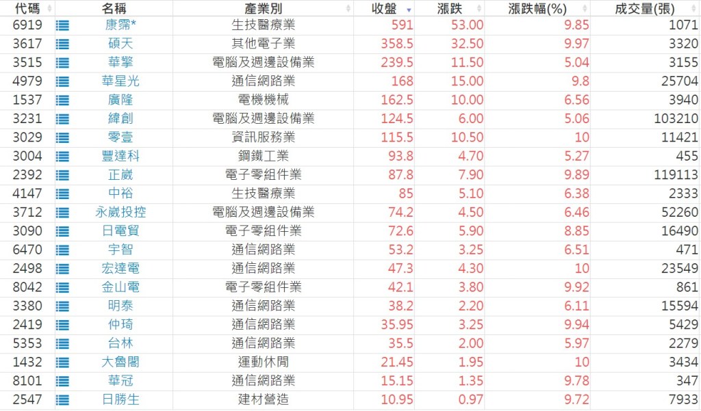 2024-1125日新高爆量上漲股 2024-11-25 股狗網小編 選股條件 發表留言 利用股狗選股的選股條件可以【挑選突破20日新高,爆量上漲起漲點股票】 1.股狗選股 https://www.stockdog.com.tw 2.選股條件: a.收盤價創20日新高 b.當日漲幅 > 2% C.成交量大於5日均量2倍 免責宣言 本網站文章所提供資訊僅供參考,並無任何推介買賣之意,投資人應自行承擔交易風險。 分享此文: 按一下即可分享至 X(在新視窗中開啟) X 按一下以分享至 Facebook(在新視窗中開啟) Facebook 喜歡 正在載入...