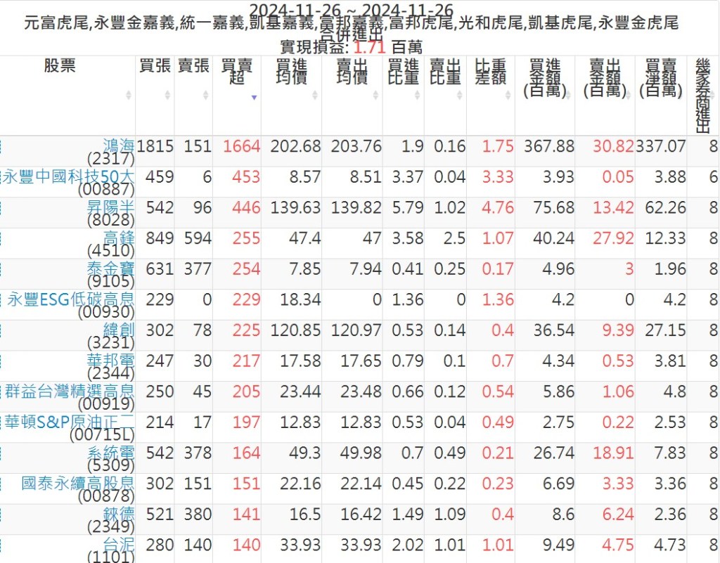 2024-1126主力買賣超個股 2024-11-26 股狗網小編 籌碼面每日資訊 發表留言 可參考下文 『如何查詢當沖、隔日沖分公司券商買賣』 主力當沖券商: 『元富虎尾』,『永豐金嘉義』,『統一嘉義』,『凱基嘉義』,『富邦嘉義』,『富邦虎尾』,『光和虎尾』,『凱基虎尾』,『永豐金虎尾』。 『當沖標的』 『買超股票』 『賣超股票』 免責宣言 本網站文章所提供資訊僅供參考,並無任何推介買賣之意,投資人應自行承擔交易風險。 分享此文: 按一下即可分享至 X(在新視窗中開啟) X 按一下以分享至 Facebook(在新視窗中開啟) Facebook 喜歡 正在載入...