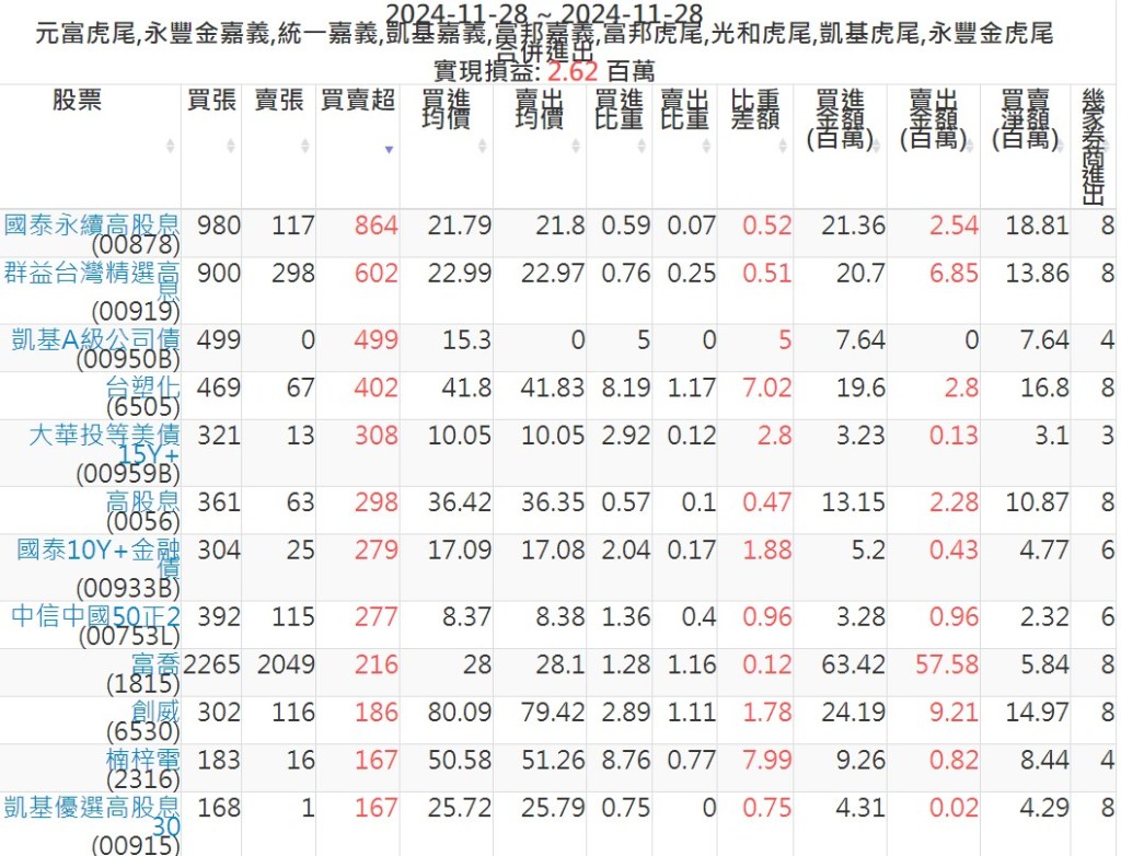 2024-1128主力買賣超個股 2024-11-28 股狗網小編 籌碼面每日資訊 發表留言 可參考下文 『如何查詢當沖、隔日沖分公司券商買賣』 主力當沖券商: 『元富虎尾』,『永豐金嘉義』,『統一嘉義』,『凱基嘉義』,『富邦嘉義』,『富邦虎尾』,『光和虎尾』,『凱基虎尾』,『永豐金虎尾』。 『當沖標的』 『買超股票』 『賣超股票』 免責宣言 本網站文章所提供資訊僅供參考,並無任何推介買賣之意,投資人應自行承擔交易風險。 分享此文: 分享到 X(在新視窗中開啟) X 分享到 Facebook(在新視窗中開啟) Facebook 喜歡 正在載入...