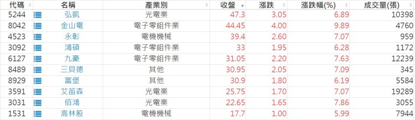 2024-1128日新高爆量上漲股 2024-11-28 股狗網小編 選股條件 發表留言 利用股狗選股的選股條件可以【挑選突破20日新高,爆量上漲起漲點股票】 1.股狗選股 https://www.stockdog.com.tw 2.選股條件: a.收盤價創20日新高 b.當日漲幅 > 2% C.成交量大於5日均量2倍 免責宣言 本網站文章所提供資訊僅供參考,並無任何推介買賣之意,投資人應自行承擔交易風險。 分享此文: 分享到 X(在新視窗中開啟) X 分享到 Facebook(在新視窗中開啟) Facebook 喜歡 正在載入...