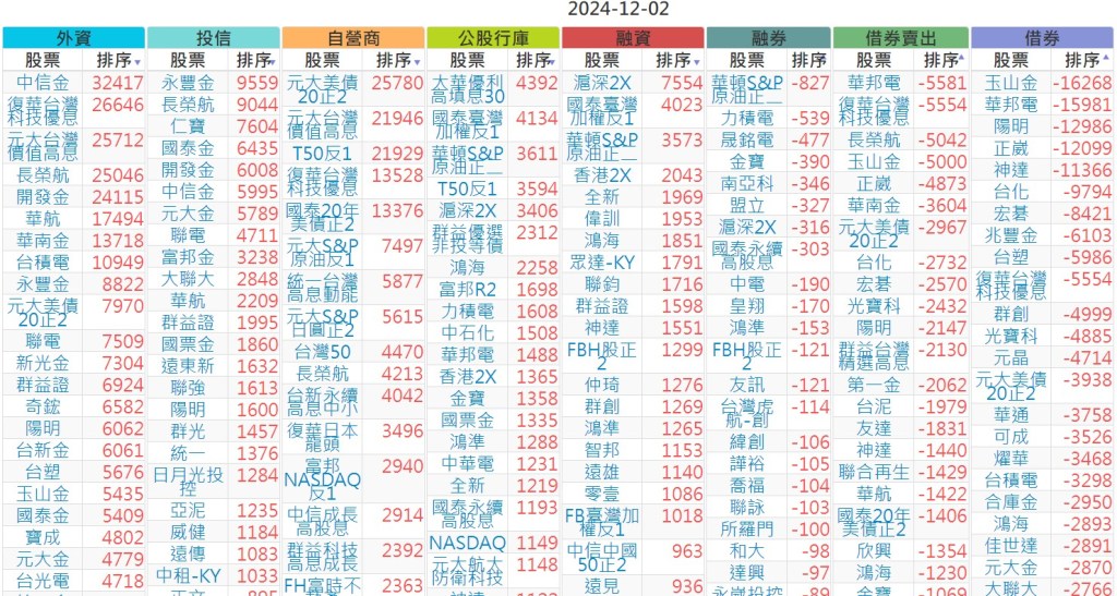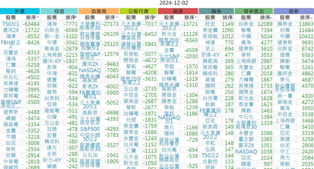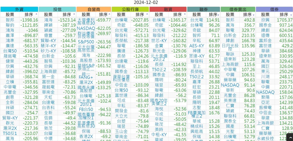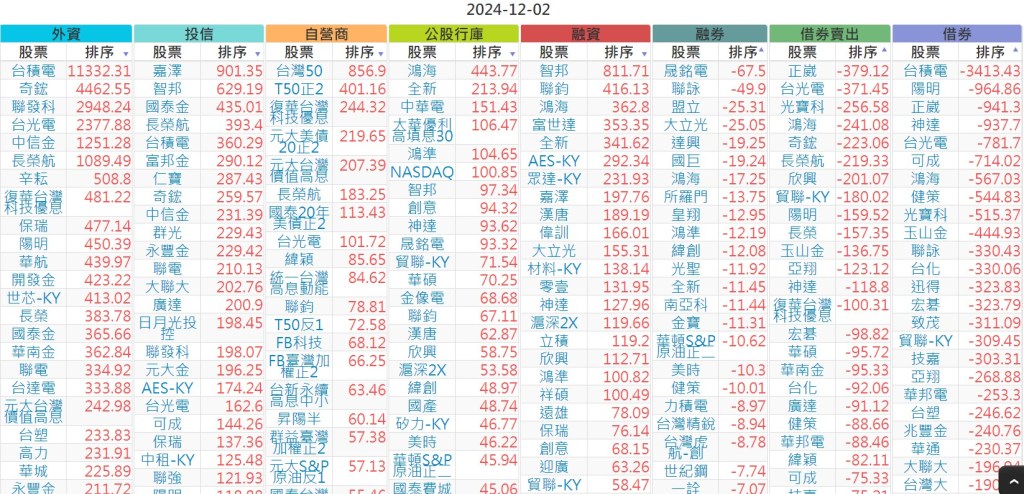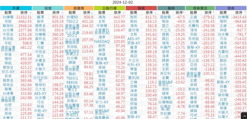 2024-1202【外資、投信】買賣超個股 2024-12-03 股狗網小編 投資誌-大盤 發表留言 上市:【外資、投信】買超(依金額) (單位:百萬) 上市:【外資、投信】賣超(依金額) (單位:百萬) 上市:【外資、投信】買超(依張數) (單位:張數) 上市:【外資、投信】賣超(依張數) (單位:張數) 免責宣言 本網站文章所提供資訊僅供參考,並無任何推介買賣之意,投資人應自行承擔交易風險。 分享此文: 按一下即可分享至 X(在新視窗中開啟) X 按一下以分享至 Facebook(在新視窗中開啟) Facebook 喜歡 正在載入...