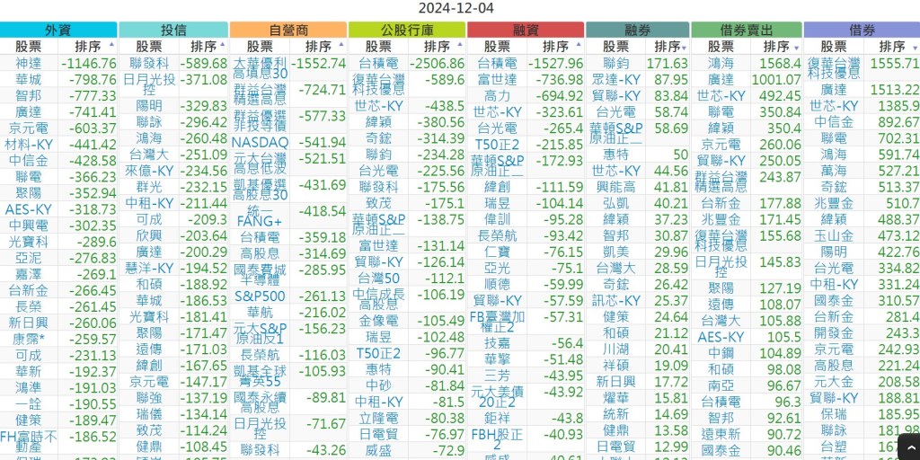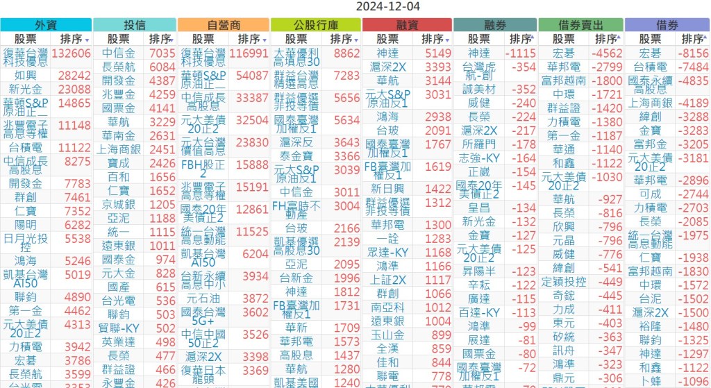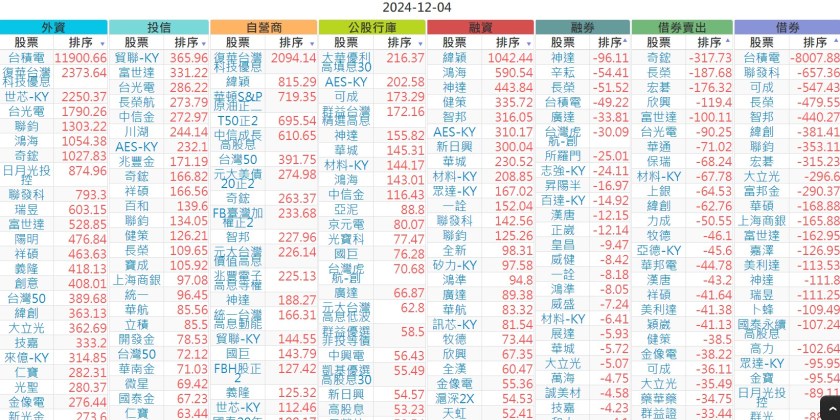 2024-1204【外資、投信】買賣超個股 2024-12-04 stockdog168 投資誌-大盤 發表留言 上市:【外資、投信】買超(依金額) (單位:百萬) 上市:【外資、投信】賣超(依金額) (單位:百萬) 上市:【外資、投信】買超(依張數) (單位:張數) 上市:【外資、投信】賣超(依張數) (單位:張數) 免責宣言 本網站文章所提供資訊僅供參考,並無任何推介買賣之意,投資人應自行承擔交易風險。 分享此文: 按一下即可分享至 X(在新視窗中開啟) X 按一下以分享至 Facebook(在新視窗中開啟) Facebook 喜歡 正在載入...