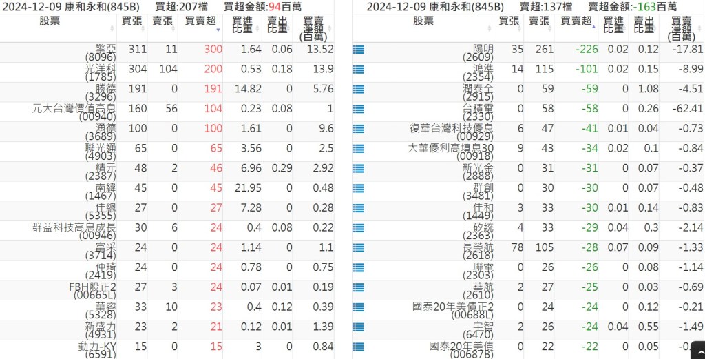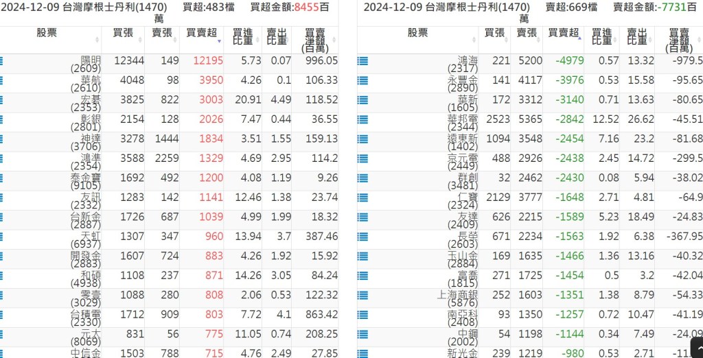 2024-1209關鍵券商買賣超 2024-12-09 股狗網小編 籌碼面每日資訊 發表留言 關鍵券商買賣超: 臺銀證券(1040): 台灣摩根士丹利(1470): 凱基台北(9268): 凱基信義(9216): 元大土城永寧(9875): 康和永和(845B) : 富邦建國(9658): 免責宣言 本網站文章所提供資訊僅供參考,並無任何推介買賣之意,投資人應自行承擔交易風險。 分享此文: 按一下即可分享至 X(在新視窗中開啟) X 按一下以分享至 Facebook(在新視窗中開啟) Facebook 喜歡 正在載入...