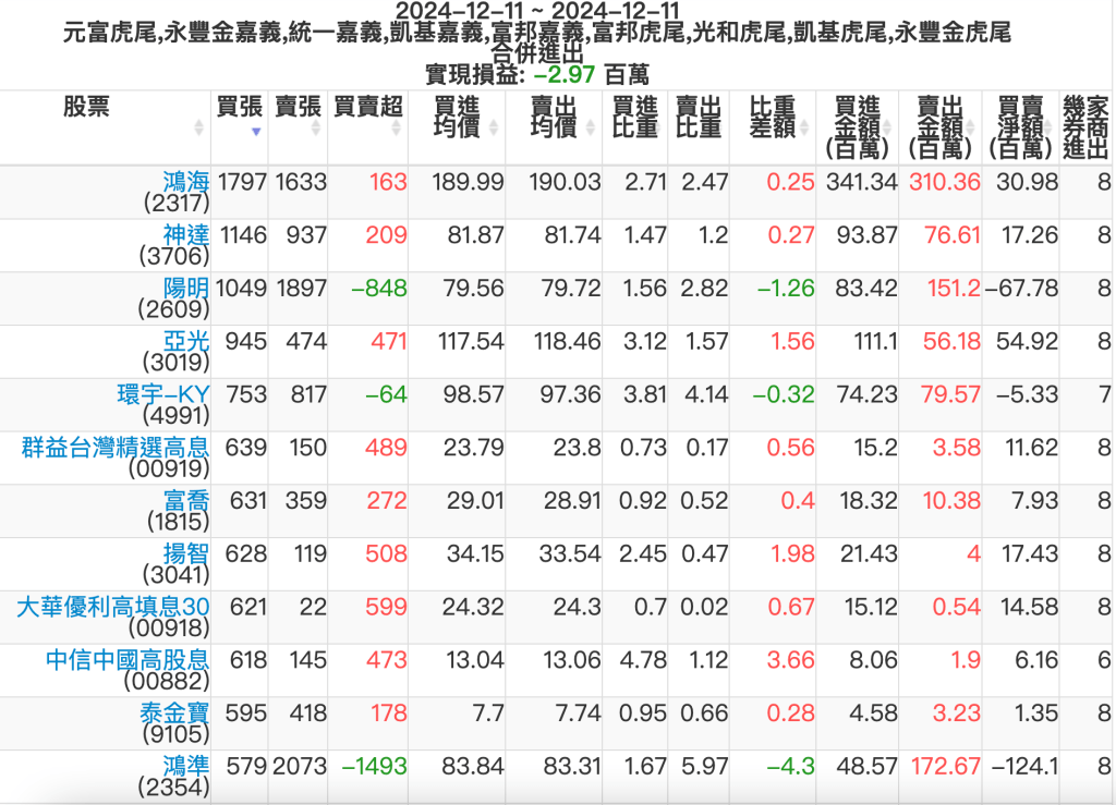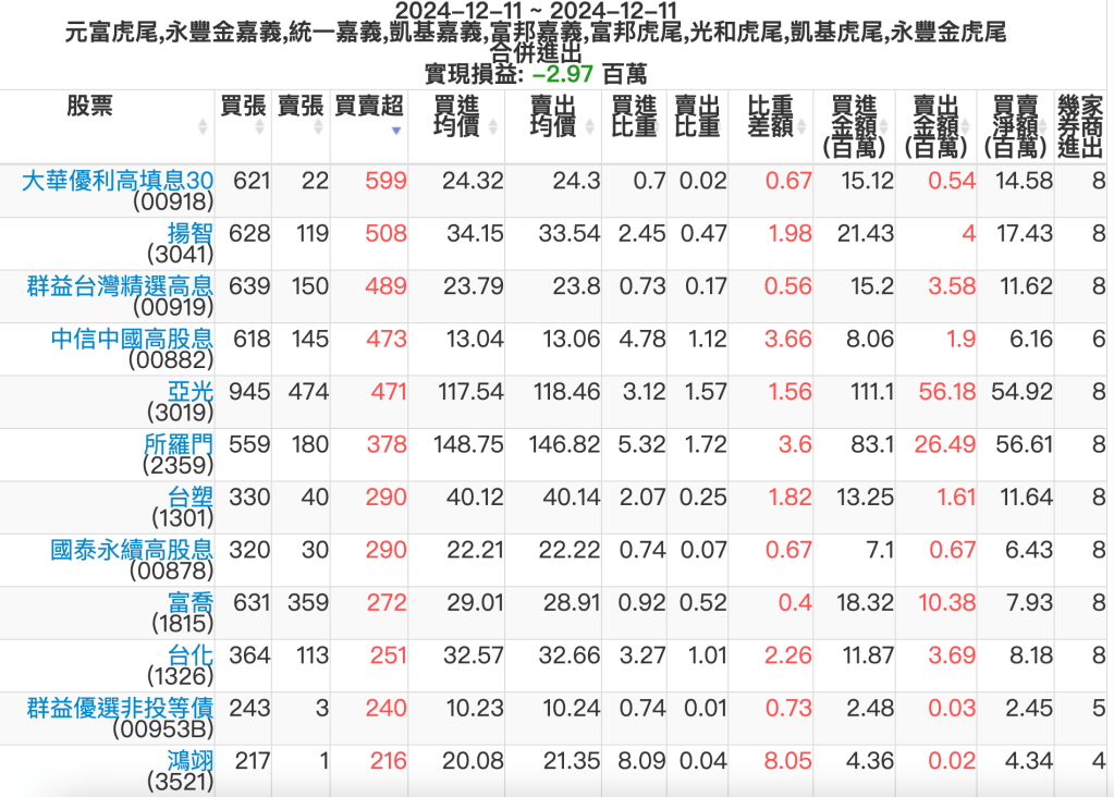 2024-1211主力買賣超個股 2024-12-11 股狗網小編 籌碼面每日資訊 發表留言 可參考下文 『如何查詢當沖、隔日沖分公司券商買賣』 主力當沖券商: 『元富虎尾』,『永豐金嘉義』,『統一嘉義』,『凱基嘉義』,『富邦嘉義』,『富邦虎尾』,『光和虎尾』,『凱基虎尾』,『永豐金虎尾』。 『當沖標的』 『買超股票』 『賣超股票』 免責宣言 本網站文章所提供資訊僅供參考,並無任何推介買賣之意,投資人應自行承擔交易風險。 分享此文: 按一下即可分享至 X(在新視窗中開啟) X 按一下以分享至 Facebook(在新視窗中開啟) Facebook 喜歡 正在載入...