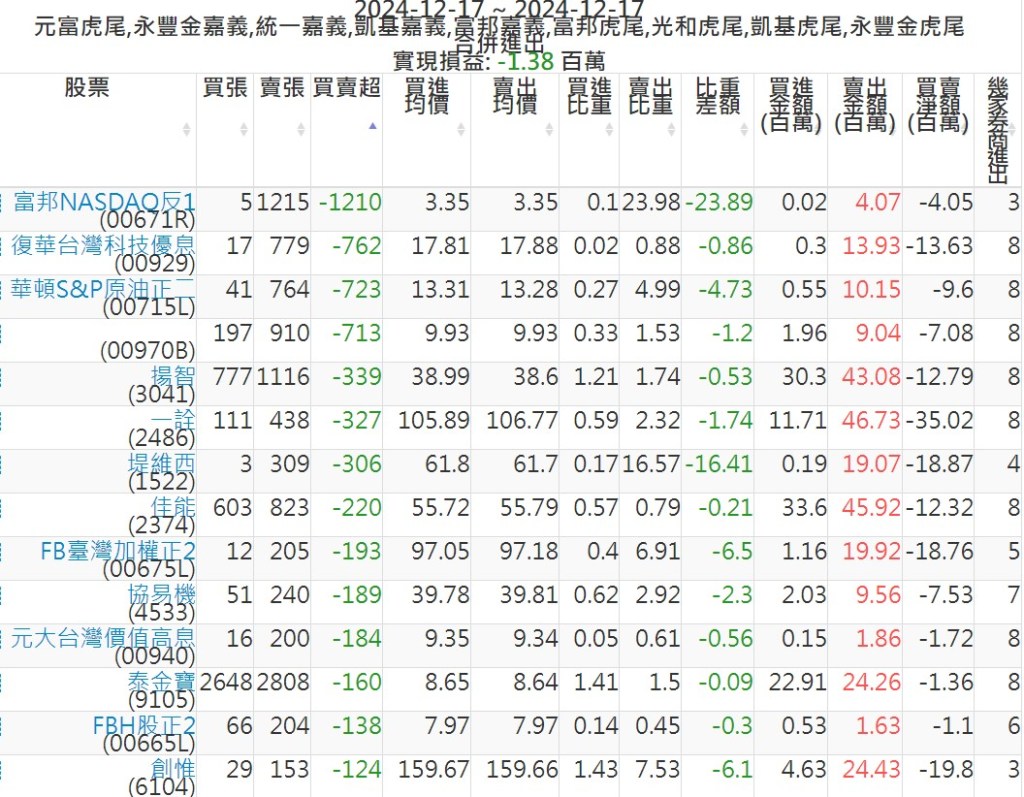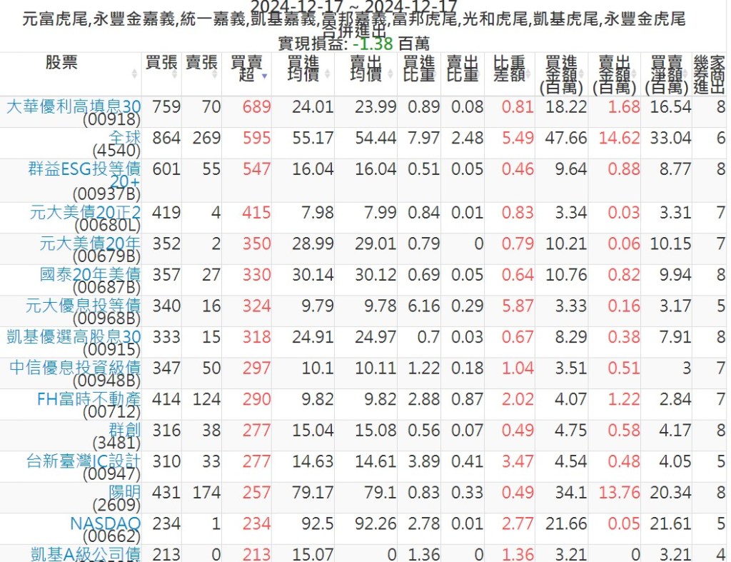 2024-1217主力買賣超個股 2024-12-17 股狗網小編 籌碼面每日資訊 發表留言 可參考下文 『如何查詢當沖、隔日沖分公司券商買賣』 主力當沖券商: 『元富虎尾』,『永豐金嘉義』,『統一嘉義』,『凱基嘉義』,『富邦嘉義』,『富邦虎尾』,『光和虎尾』,『凱基虎尾』,『永豐金虎尾』。 『當沖標的』 『買超股票』 『賣超股票』 免責宣言 本網站文章所提供資訊僅供參考,並無任何推介買賣之意,投資人應自行承擔交易風險。 分享此文: 按一下即可分享至 X(在新視窗中開啟) X 按一下以分享至 Facebook(在新視窗中開啟) Facebook 喜歡 正在載入...