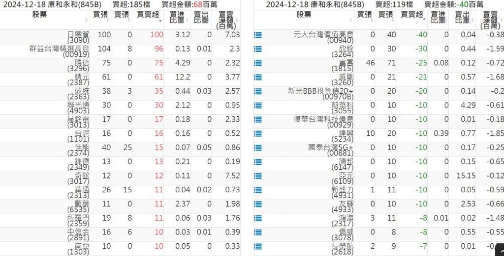 2024-1218關鍵券商買賣超 2024-12-18 股狗網小編 籌碼面每日資訊 發表留言 關鍵券商買賣超: 臺銀證券(1040): 台灣摩根士丹利(1470): 凱基台北(9268): 凱基信義(9216): 元大土城永寧(9875): 康和永和(845B) : 富邦建國(9658): 免責宣言 本網站文章所提供資訊僅供參考,並無任何推介買賣之意,投資人應自行承擔交易風險。 分享此文: 按一下即可分享至 X(在新視窗中開啟) X 按一下以分享至 Facebook(在新視窗中開啟) Facebook 喜歡 正在載入...
