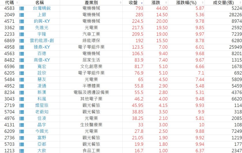 2024-1218日新高爆量上漲股 2024-12-18 股狗網小編 選股條件 發表留言 利用股狗選股的選股條件可以【挑選突破20日新高,爆量上漲起漲點股票】 1.股狗選股 https://www.stockdog.com.tw 2.選股條件: a.收盤價創20日新高 b.當日漲幅 > 2% C.成交量大於5日均量2倍 免責宣言 本網站文章所提供資訊僅供參考,並無任何推介買賣之意,投資人應自行承擔交易風險。 分享此文: 按一下即可分享至 X(在新視窗中開啟) X 按一下以分享至 Facebook(在新視窗中開啟) Facebook 喜歡 正在載入...