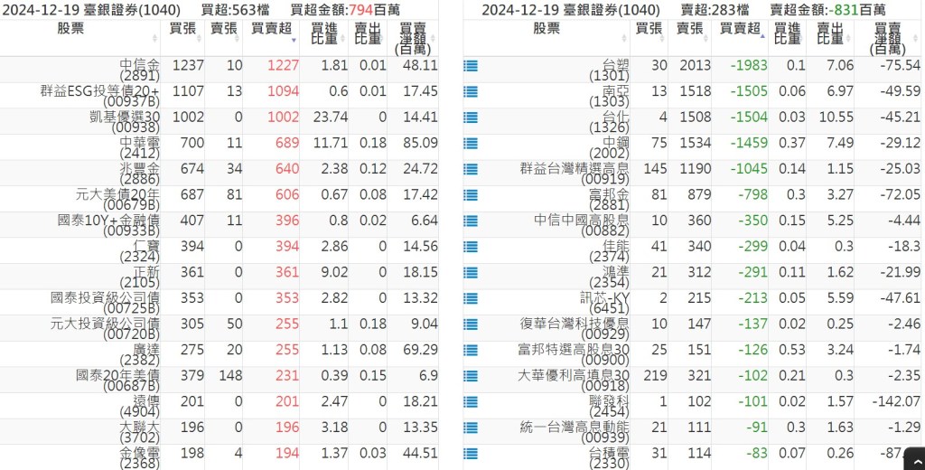 2024-1219關鍵券商買賣超 2024-12-19 股狗網小編 籌碼面每日資訊 發表留言 關鍵券商買賣超: 臺銀證券(1040): 台灣摩根士丹利(1470): 凱基台北(9268): 凱基信義(9216): 元大土城永寧(9875): 康和永和(845B) : 富邦建國(9658): 免責宣言 本網站文章所提供資訊僅供參考,並無任何推介買賣之意,投資人應自行承擔交易風險。 分享此文: 按一下即可分享至 X(在新視窗中開啟) X 按一下以分享至 Facebook(在新視窗中開啟) Facebook 喜歡 正在載入...