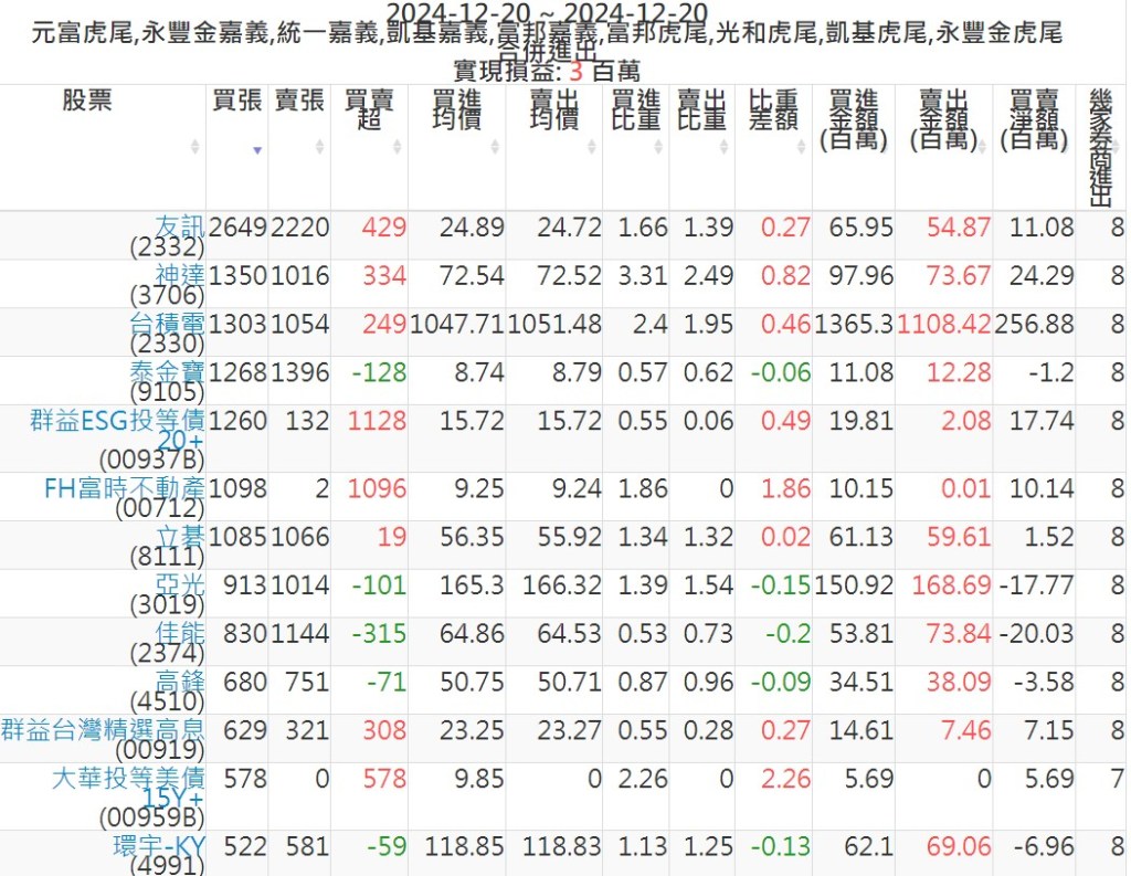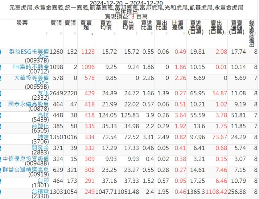 2024-1220主力買賣超個股 2024-12-20 股狗網小編 籌碼面每日資訊 發表留言 可參考下文 『如何查詢當沖、隔日沖分公司券商買賣』 主力當沖券商: 『元富虎尾』,『永豐金嘉義』,『統一嘉義』,『凱基嘉義』,『富邦嘉義』,『富邦虎尾』,『光和虎尾』,『凱基虎尾』,『永豐金虎尾』。 『當沖標的』 『買超股票』 『賣超股票』 免責宣言 本網站文章所提供資訊僅供參考,並無任何推介買賣之意,投資人應自行承擔交易風險。 分享此文: 按一下即可分享至 X(在新視窗中開啟) X 按一下以分享至 Facebook(在新視窗中開啟) Facebook 喜歡 正在載入...
