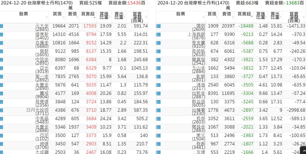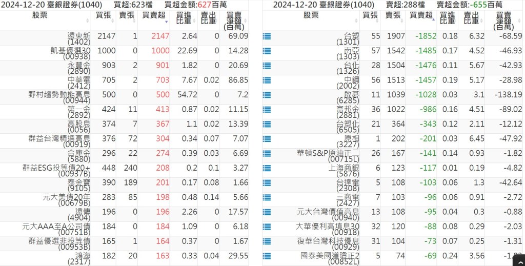 2024-1220關鍵券商買賣超 2024-12-20 股狗網小編 籌碼面每日資訊 發表留言 關鍵券商買賣超: 臺銀證券(1040): 台灣摩根士丹利(1470): 凱基台北(9268): 凱基信義(9216): 元大土城永寧(9875): 康和永和(845B) : 富邦建國(9658): 免責宣言 本網站文章所提供資訊僅供參考,並無任何推介買賣之意,投資人應自行承擔交易風險。 分享此文: 按一下即可分享至 X(在新視窗中開啟) X 按一下以分享至 Facebook(在新視窗中開啟) Facebook 喜歡 正在載入...