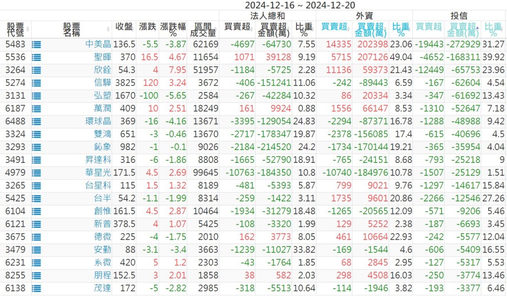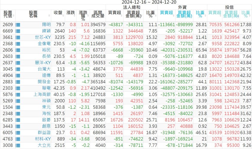 2024/12/16~2024/12/20近5日【投信】買賣超個股 2024-12-22 股狗網小編 投資誌-大盤 發表留言 【上市投信買超個股】(以金額排行,單位:萬) 【上市投信賣超個股】(以金額排行,單位:萬) 【上櫃投信買超個股】(以金額排行,單位:萬) 【上櫃投信賣超個股】(以金額排行,單位:萬) 免責宣言 本網站文章所提供資訊僅供參考,並無任何推介買賣之意,投資人應自行承擔交易風險。 分享此文: 分享到 X(在新視窗中開啟) X 分享到 Facebook(在新視窗中開啟) Facebook 喜歡 正在載入...