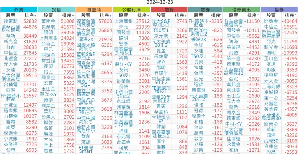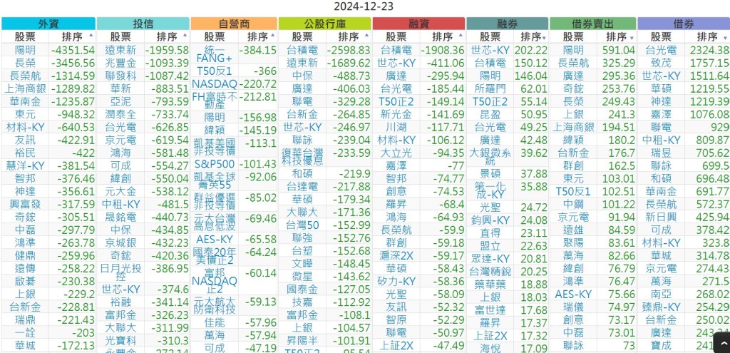 2024-1223【外資、投信】買賣超個股 2024-12-24 股狗網小編 投資誌-大盤 發表留言 上市:【外資、投信】買超(依金額) (單位:百萬) 上市:【外資、投信】賣超(依金額) (單位:百萬) 上市:【外資、投信】買超(依張數) (單位:張數) 上市:【外資、投信】賣超(依張數) (單位:張數) 免責宣言 本網站文章所提供資訊僅供參考,並無任何推介買賣之意,投資人應自行承擔交易風險。 分享此文: 按一下即可分享至 X(在新視窗中開啟) X 按一下以分享至 Facebook(在新視窗中開啟) Facebook 喜歡 正在載入...