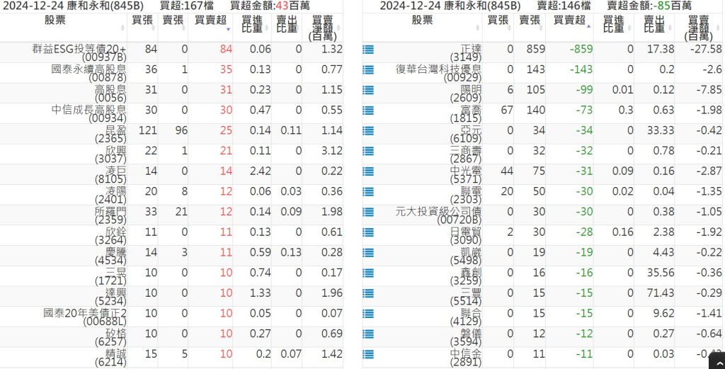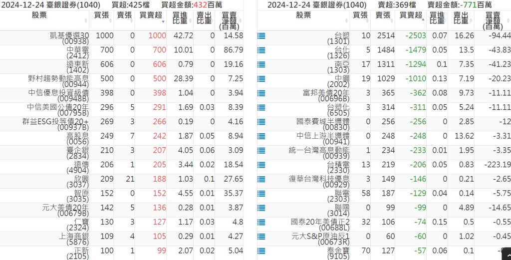 2024-1224關鍵券商買賣超 2024-12-24 股狗網小編 籌碼面每日資訊 發表留言 關鍵券商買賣超: 臺銀證券(1040): 台灣摩根士丹利(1470): 凱基台北(9268): 凱基信義(9216): 元大土城永寧(9875): 康和永和(845B) : 富邦建國(9658): 免責宣言 本網站文章所提供資訊僅供參考,並無任何推介買賣之意,投資人應自行承擔交易風險。 分享此文: 按一下即可分享至 X(在新視窗中開啟) X 按一下以分享至 Facebook(在新視窗中開啟) Facebook 喜歡 正在載入...