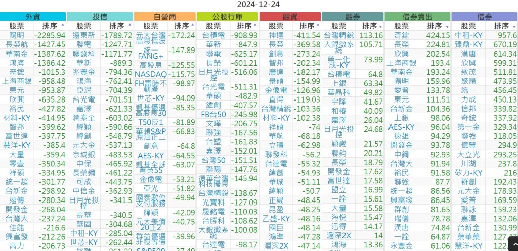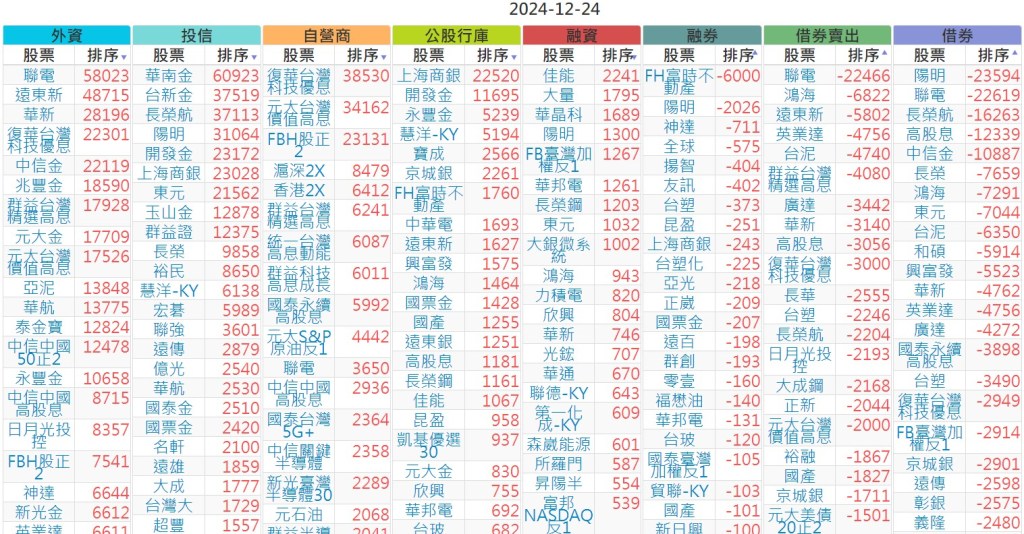 2024-1224【外資、投信】買賣超個股 2024-12-25 股狗網小編 投資誌-大盤 發表留言 上市:【外資、投信】買超(依金額) (單位:百萬) 上市:【外資、投信】賣超(依金額) (單位:百萬) 上市:【外資、投信】買超(依張數) (單位:張數) 上市:【外資、投信】賣超(依張數) (單位:張數) 免責宣言 本網站文章所提供資訊僅供參考,並無任何推介買賣之意,投資人應自行承擔交易風險。 分享此文: 按一下即可分享至 X(在新視窗中開啟) X 按一下以分享至 Facebook(在新視窗中開啟) Facebook 喜歡 正在載入...