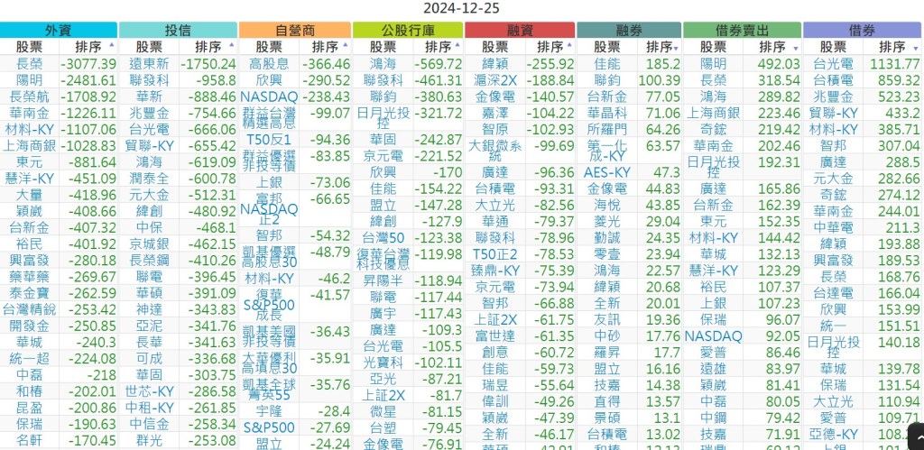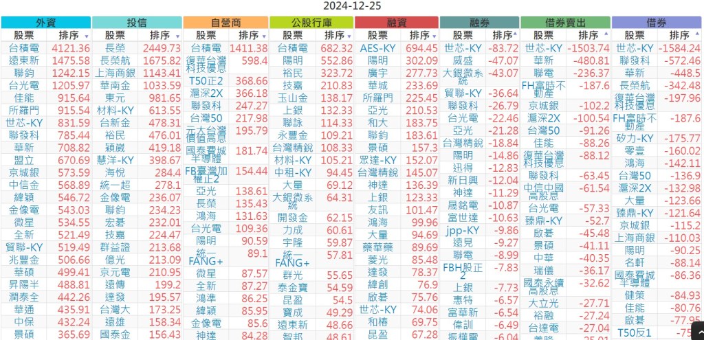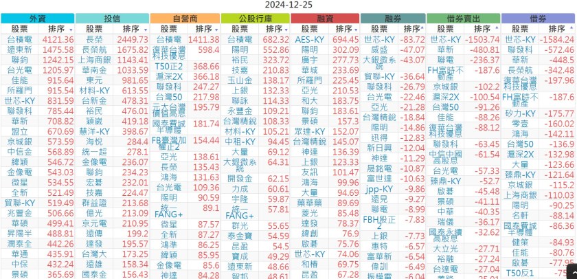 2024-1225【外資、投信】買賣超個股 2024-12-26 股狗網小編 投資誌-大盤 發表留言 上市:【外資、投信】買超(依金額) (單位:百萬) 上市:【外資、投信】賣超(依金額) (單位:百萬) 上市:【外資、投信】買超(依張數) (單位:張數) 上市:【外資、投信】賣超(依張數) (單位:張數) 免責宣言 本網站文章所提供資訊僅供參考,並無任何推介買賣之意,投資人應自行承擔交易風險。 分享此文: 分享到 X(在新視窗中開啟) X 分享到 Facebook(在新視窗中開啟) Facebook 喜歡 正在載入...