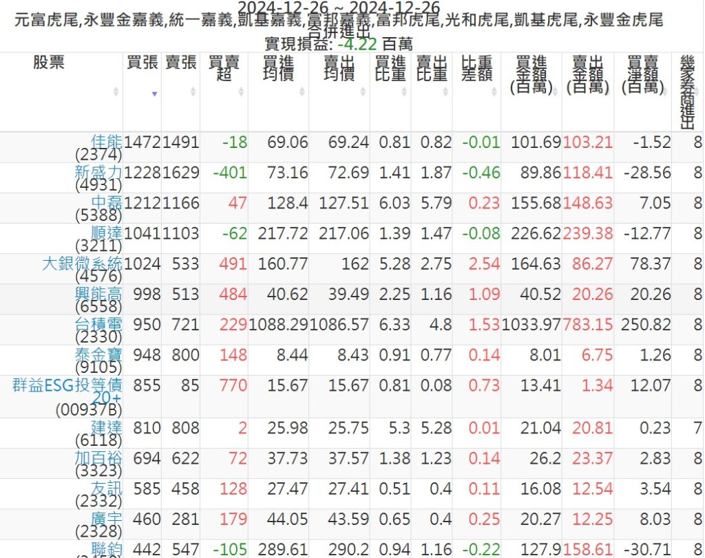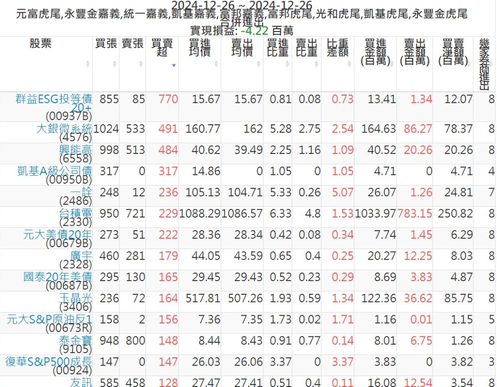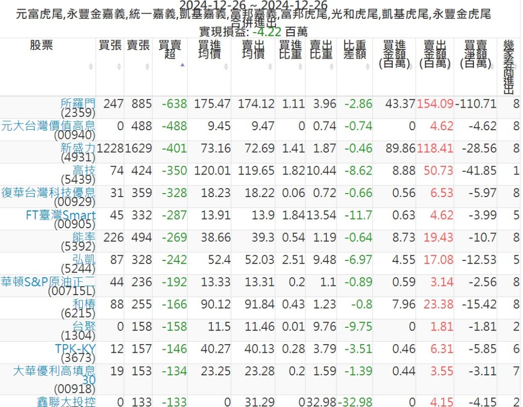 2024-1226主力買賣超個股 2024-12-26 股狗網小編 籌碼面每日資訊 發表留言 可參考下文 『如何查詢當沖、隔日沖分公司券商買賣』 主力當沖券商: 『元富虎尾』,『永豐金嘉義』,『統一嘉義』,『凱基嘉義』,『富邦嘉義』,『富邦虎尾』,『光和虎尾』,『凱基虎尾』,『永豐金虎尾』。 『當沖標的』 『買超股票』 『賣超股票』 免責宣言 本網站文章所提供資訊僅供參考,並無任何推介買賣之意,投資人應自行承擔交易風險。 分享此文: 分享到 X(在新視窗中開啟) X 分享到 Facebook(在新視窗中開啟) Facebook 喜歡 正在載入...