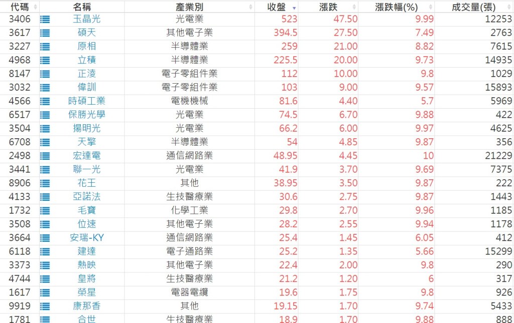 2024-1226日新高爆量上漲股 2024-12-26 股狗網小編 選股條件 發表留言 利用股狗選股的選股條件可以【挑選突破20日新高,爆量上漲起漲點股票】 1.股狗選股 https://www.stockdog.com.tw 2.選股條件: a.收盤價創20日新高 b.當日漲幅 > 2% C.成交量大於5日均量2倍 免責宣言 本網站文章所提供資訊僅供參考,並無任何推介買賣之意,投資人應自行承擔交易風險。 分享此文: 按一下即可分享至 X(在新視窗中開啟) X 按一下以分享至 Facebook(在新視窗中開啟) Facebook 喜歡 正在載入...